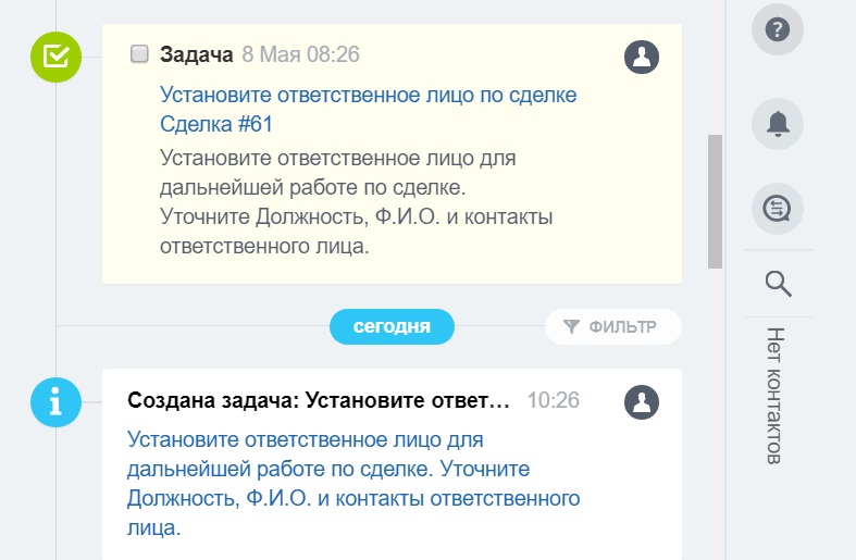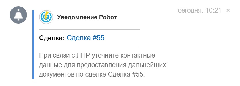 • Руководитель получит автоматическое уведомление в случае, если сделка зависла на одном из этапов.
