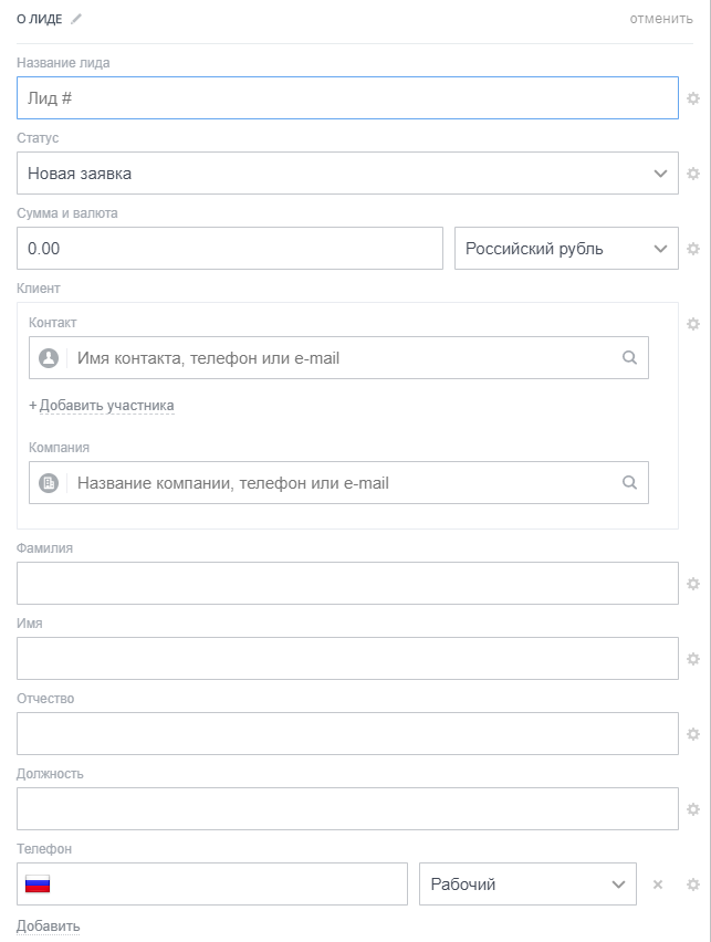 КАРТОЧКИ CRM ДЛЯ ЛИДОВ, КОНТАКТОВ, КОМПАНИЙ И СДЕЛОК