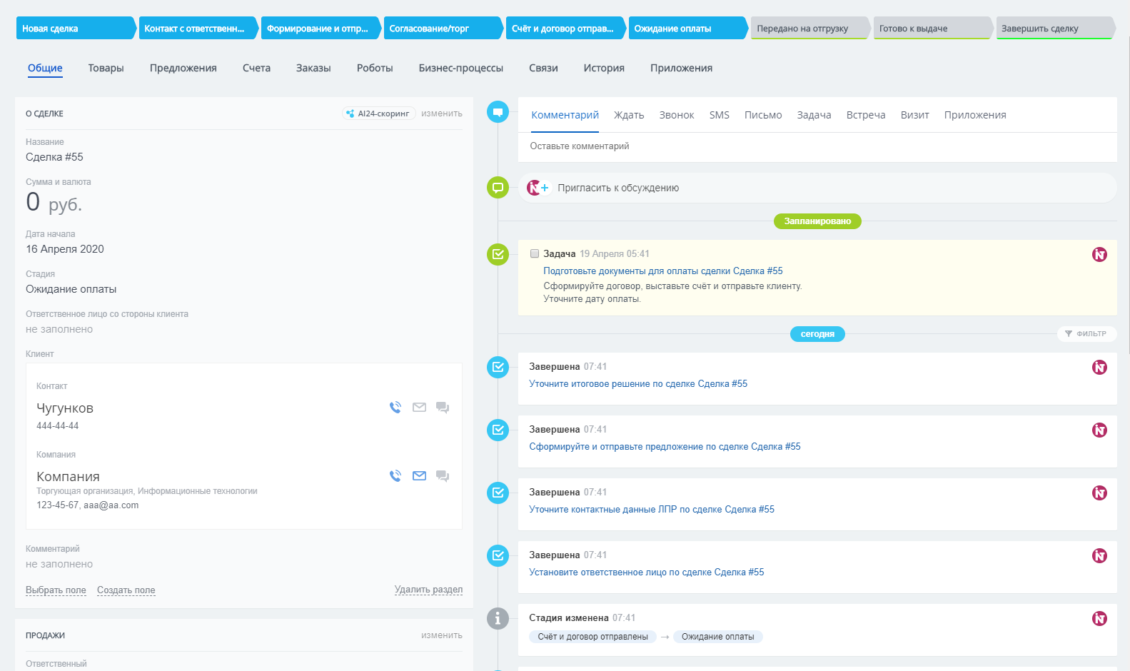 • CRM сама проведет сделки напомнит о необходимости повторной продажи