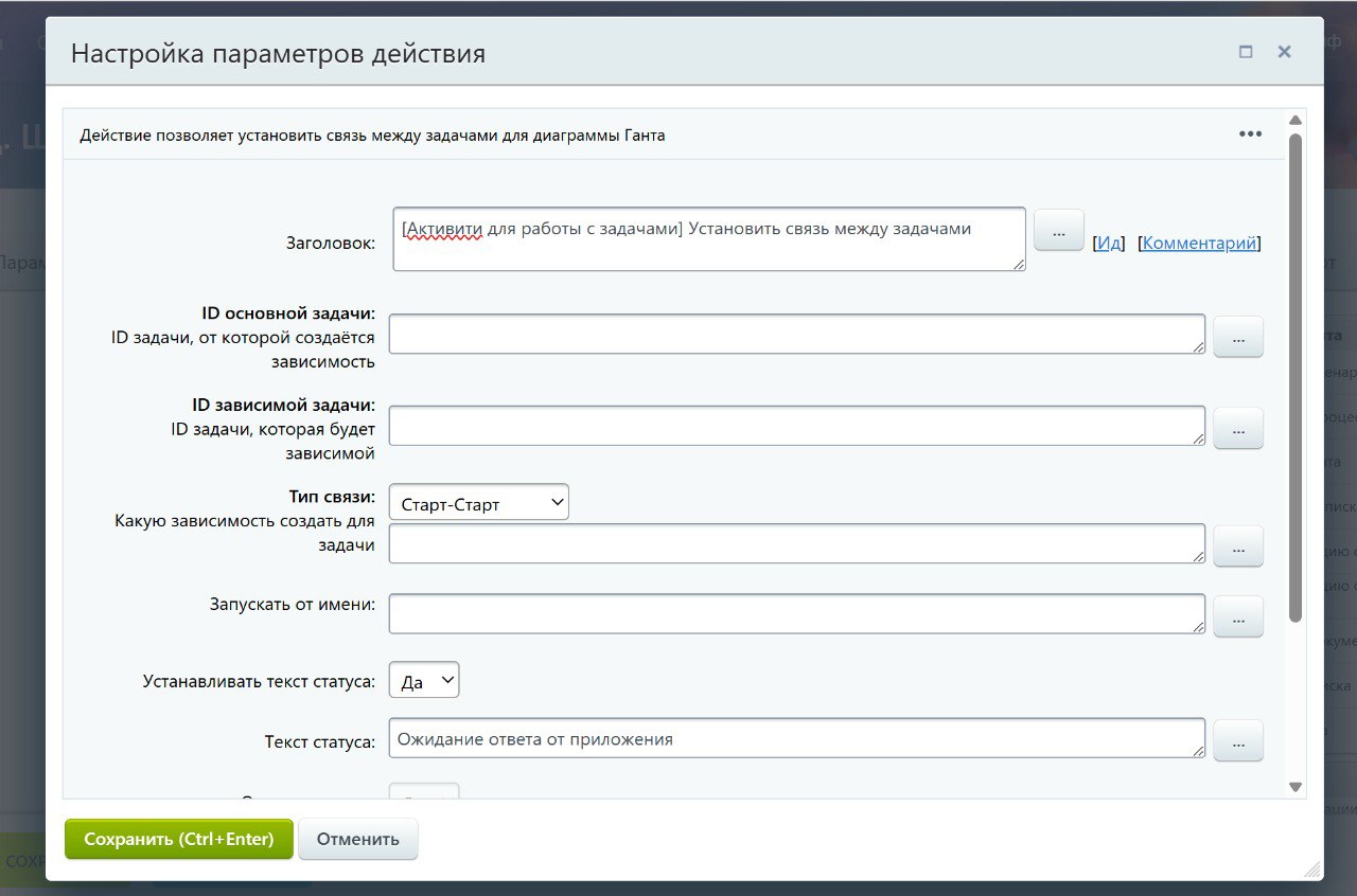 На этапе работы с задачей, когда требуется обновить её связь с другими элементами CRM.
