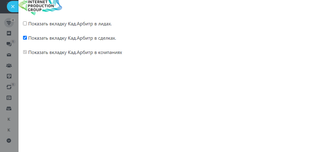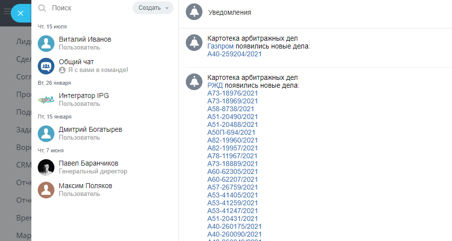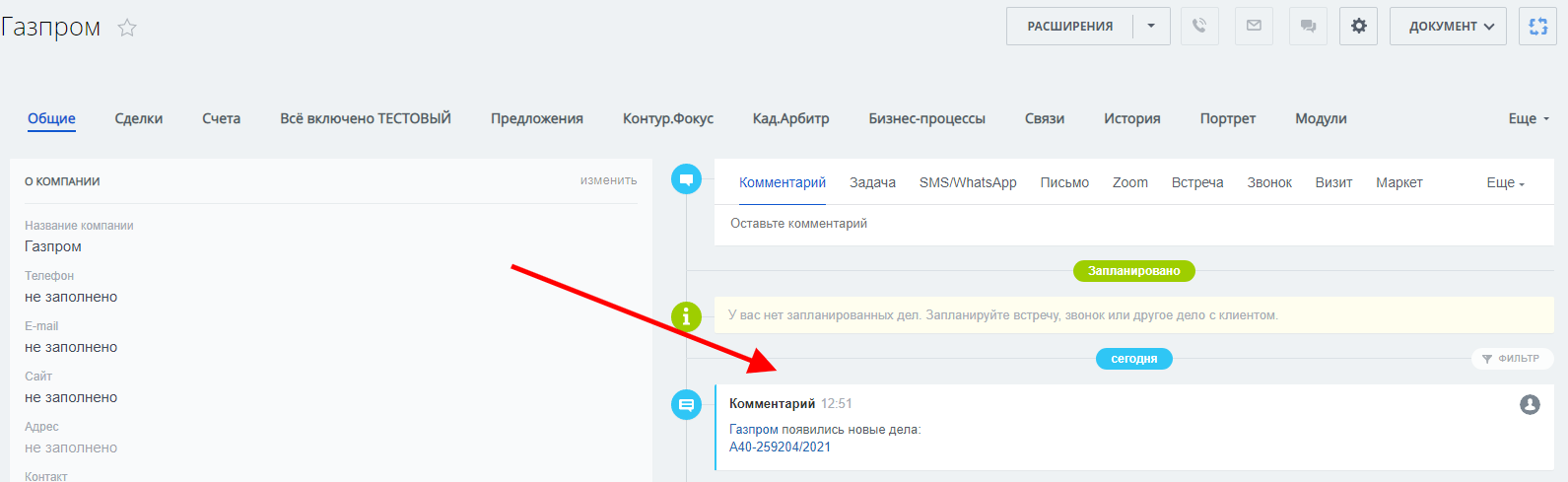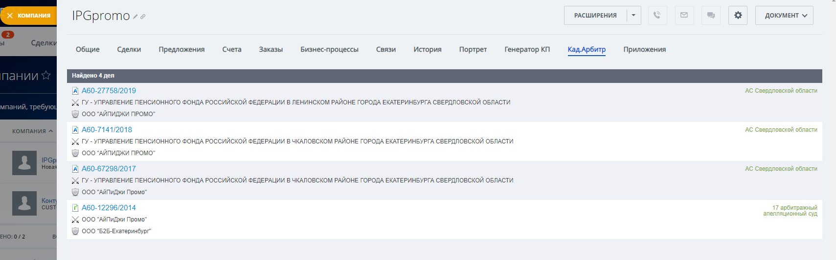 Арбитраж - приложение представляет собой интегрированную в CRM версию информационной системы «Картотека Арбитражных Дел» Высшего Арбитражного Суда Российской Федерации.