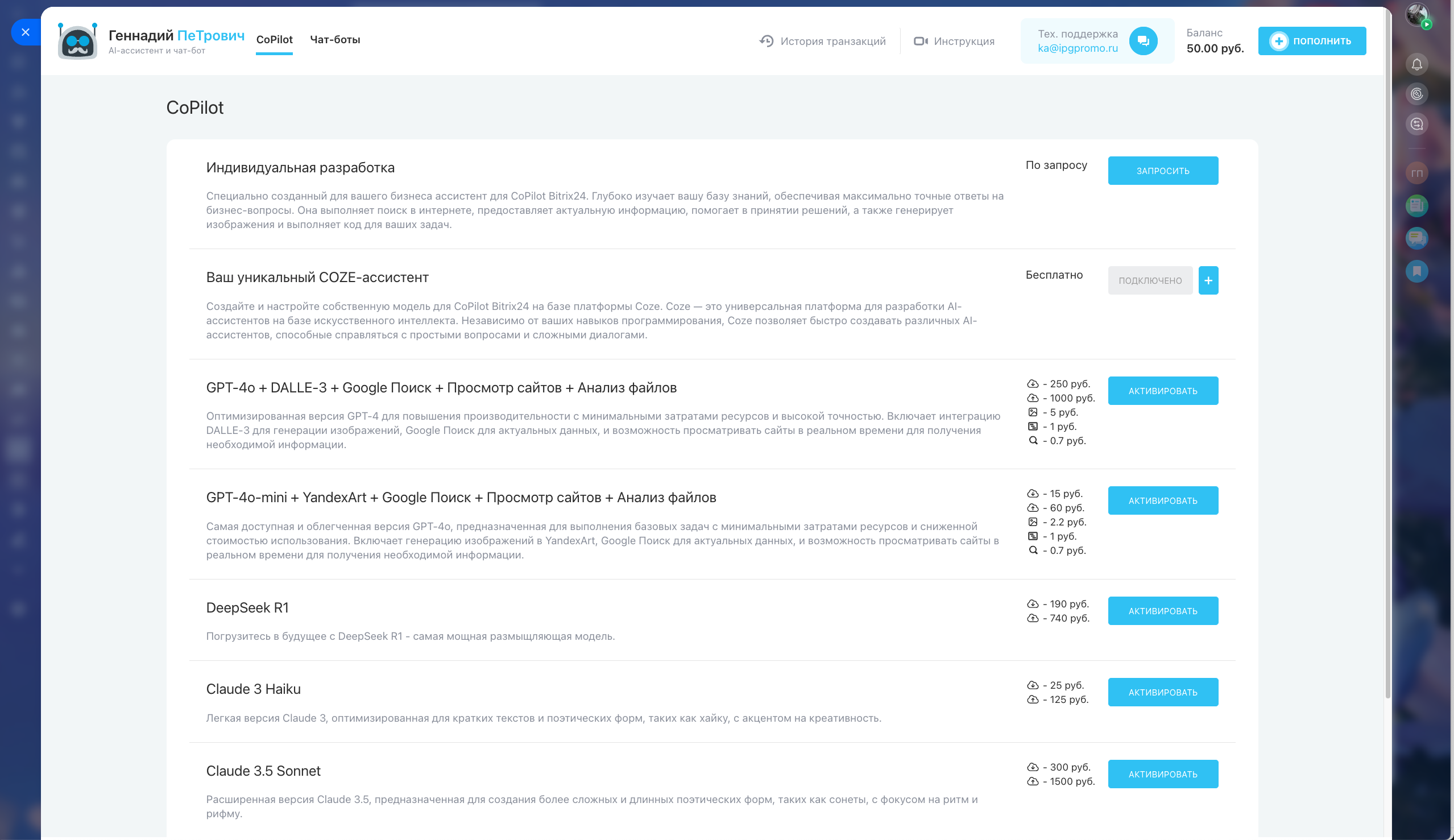 Интеллектуальный AI-ассистент и конструктор чат-ботов для Битрикс24: интеграция нейросетей ChatGPT, DALL·E, Claude и Gemini, DeepSeek. Автоматизация CRM, Чатов, Ленты, Задач, Сайтов, Почты и роботов с помощью генерации контента, анализа данных и использования актуальных баз знаний. Умная помощь и оптимизация бизнес-процессов 24/7