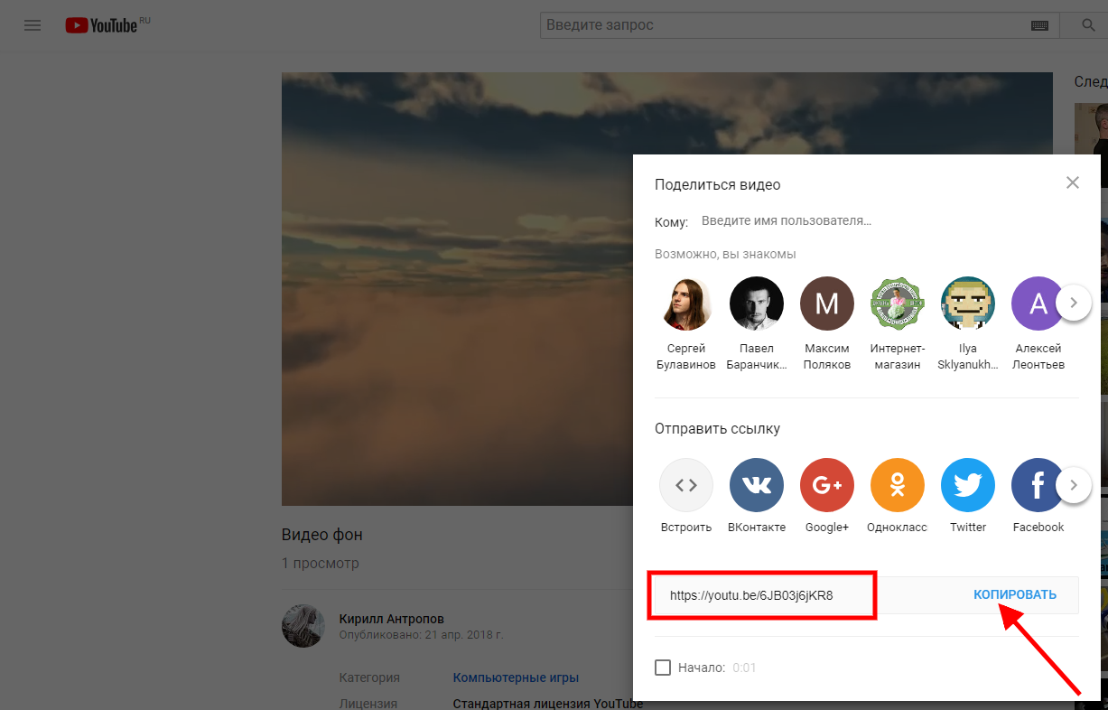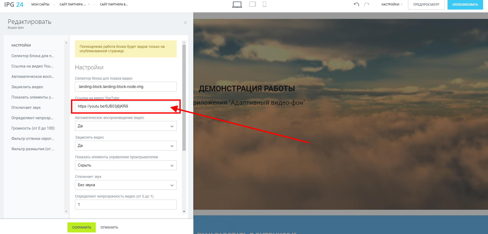 "Ссылка на видео YouTube" - сюда необходимо вставить ссылку скопированную с видео на сайте YouTube