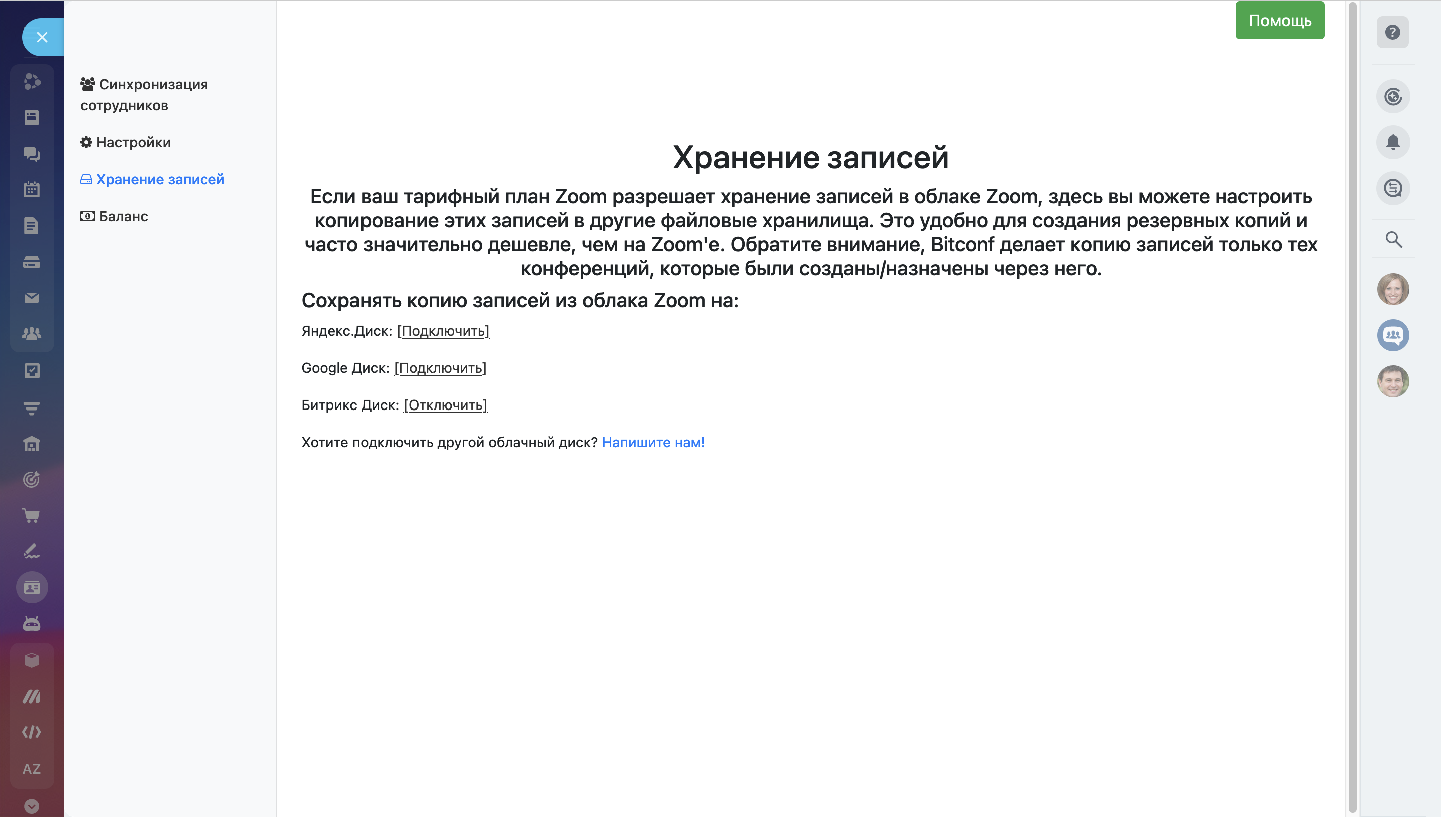 Расширенная интеграция с Zoom – Bitconf – приложение, которое позволяет автоматизировать работу с Zoom-вебинарами и Zoom-встречами.