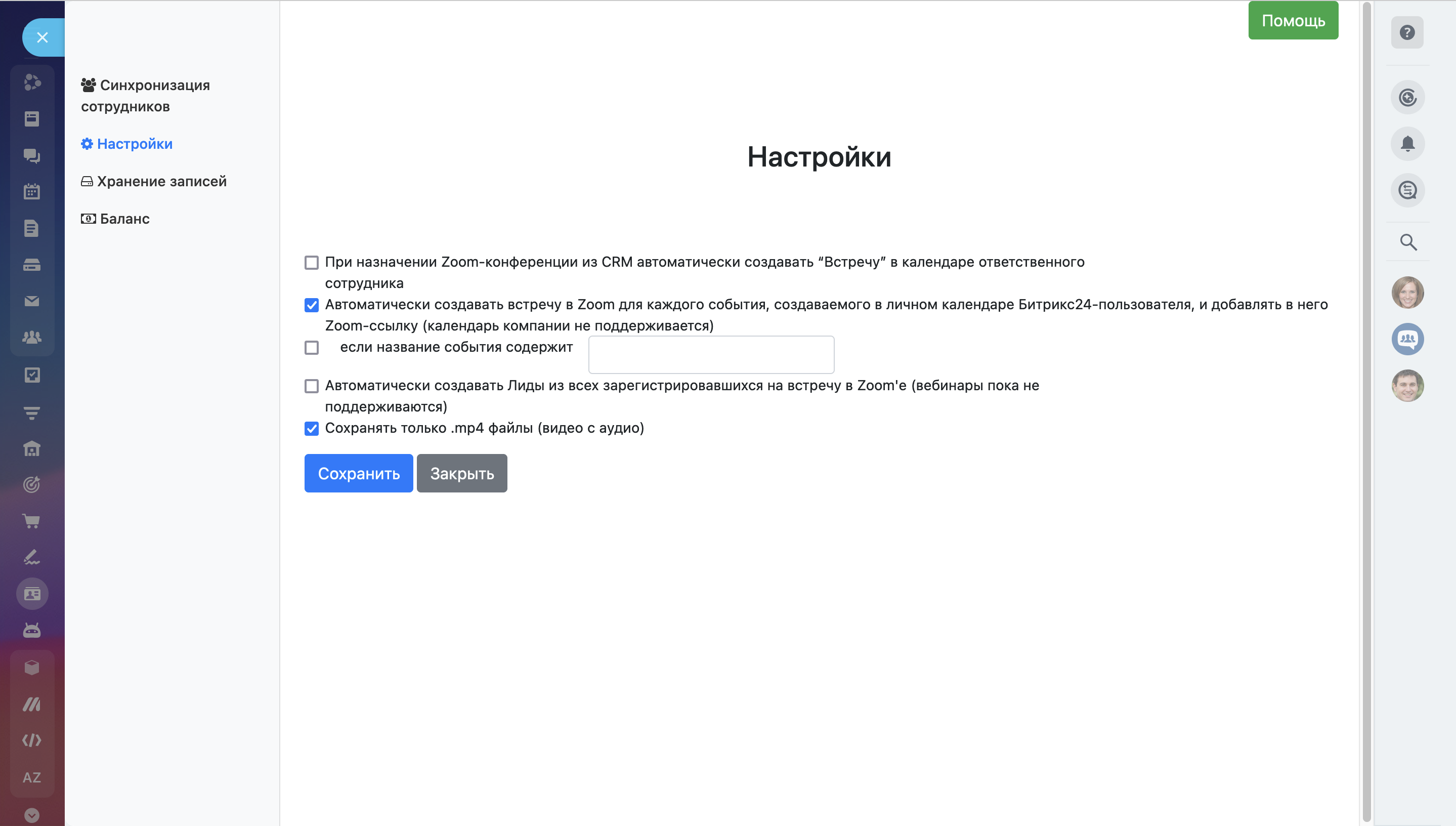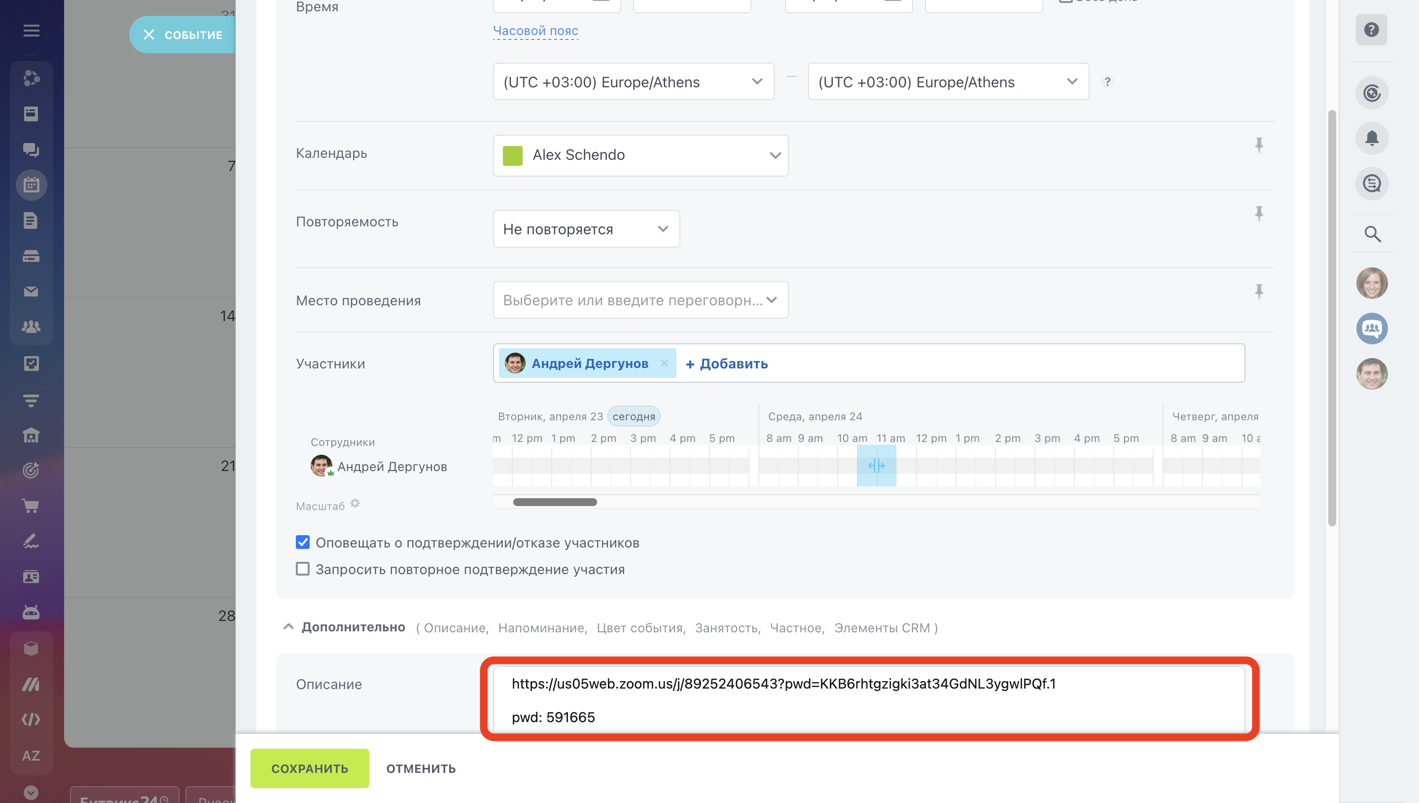 – Создавай и назначай Zoom-конференции прямо из Календаря или CRM Битрикс24.