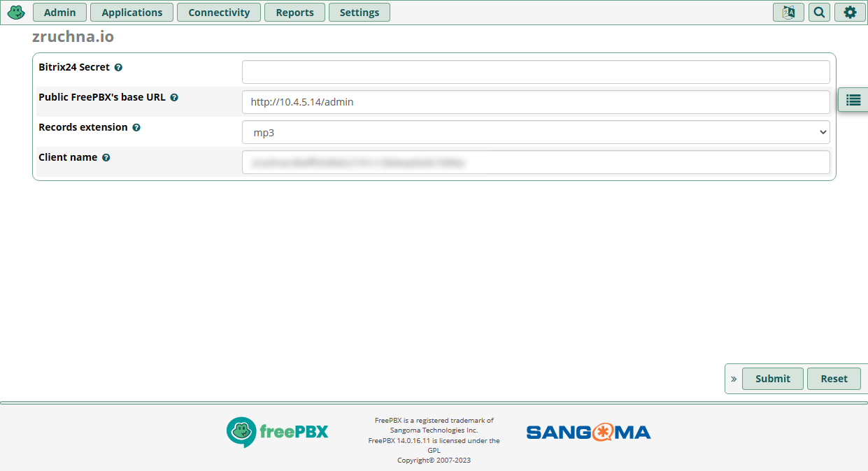 На стороне FreePBX устанавливается модуль для обмена данными с Битрикс24 по REST API. Все настройки осуществляются в интерфейсе модуля FreePBX.