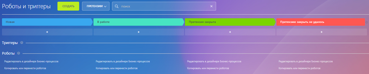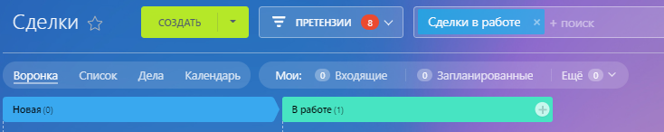 Отдельная воронка для создания внутренней «службы качества» по услугам, оказанным клиентам. Включает в себя следующие этапы: «Новое обращение», «На рассмотрении», «Обращение рассмотрено».