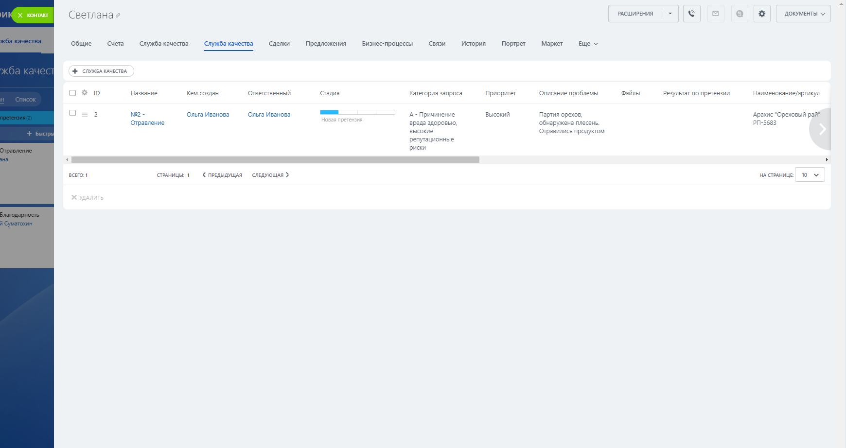 Мы выделили и настроили основные этапы работы с претензиями от клиентов: