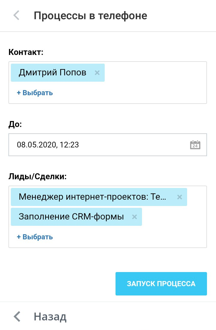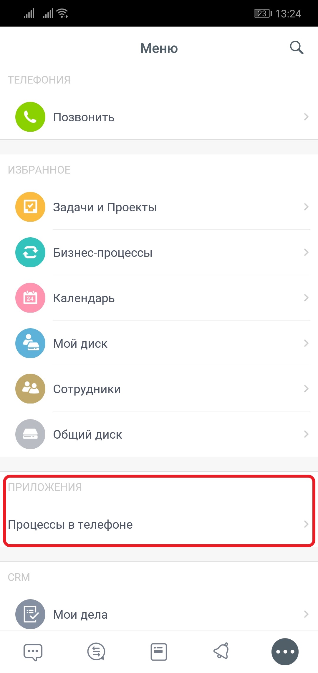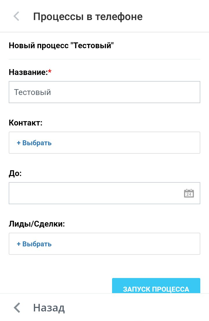 Запускайте бизнес-процессы с телефона (мобильное приложение Битрикс24). Вы можете настроить, какие имеющиеся в Вашем Битрикс24 процессы показывать в списке доступных для запуска в приложении.