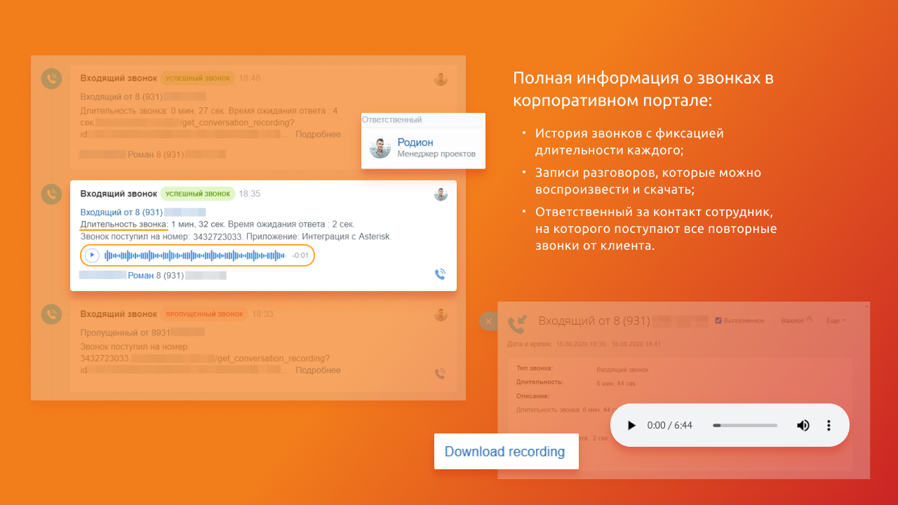 Надежная интеграция с телефонией Asterisk / FreePBX. Пять пользователей в подписке. Быстрая настройка за день.