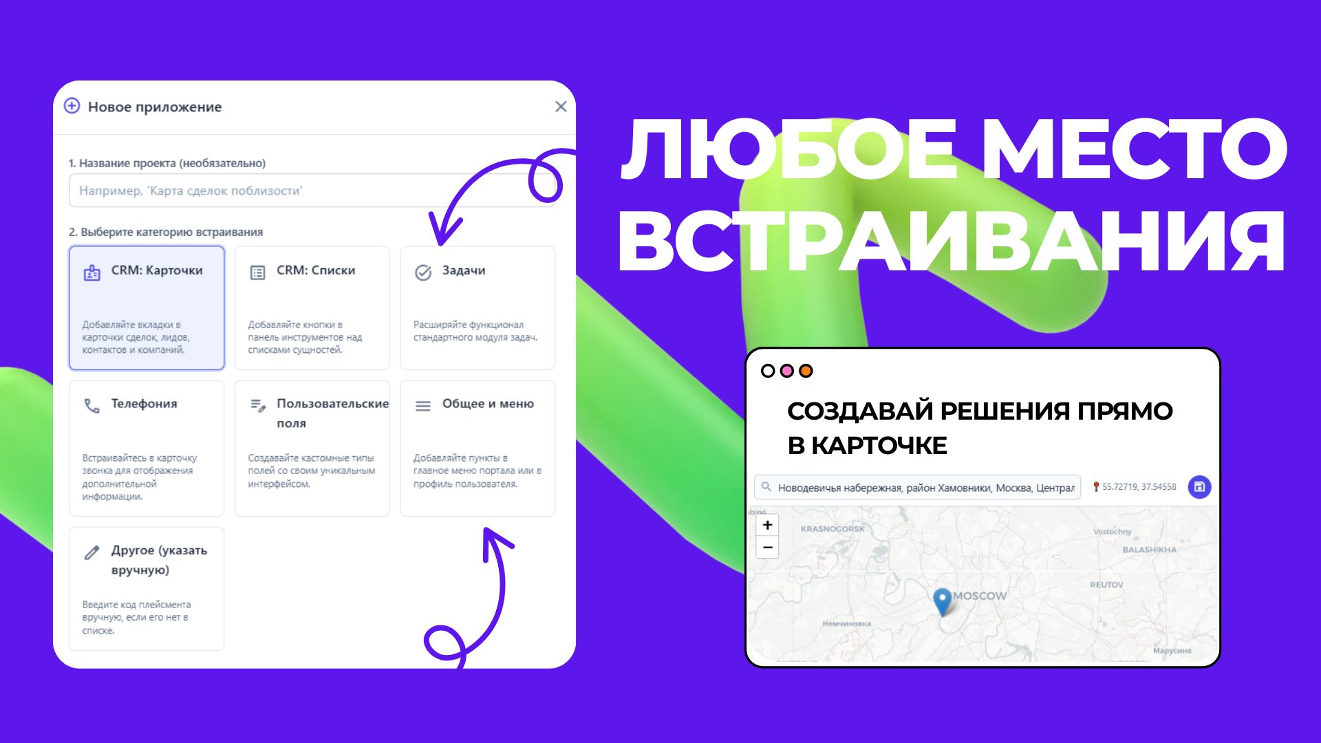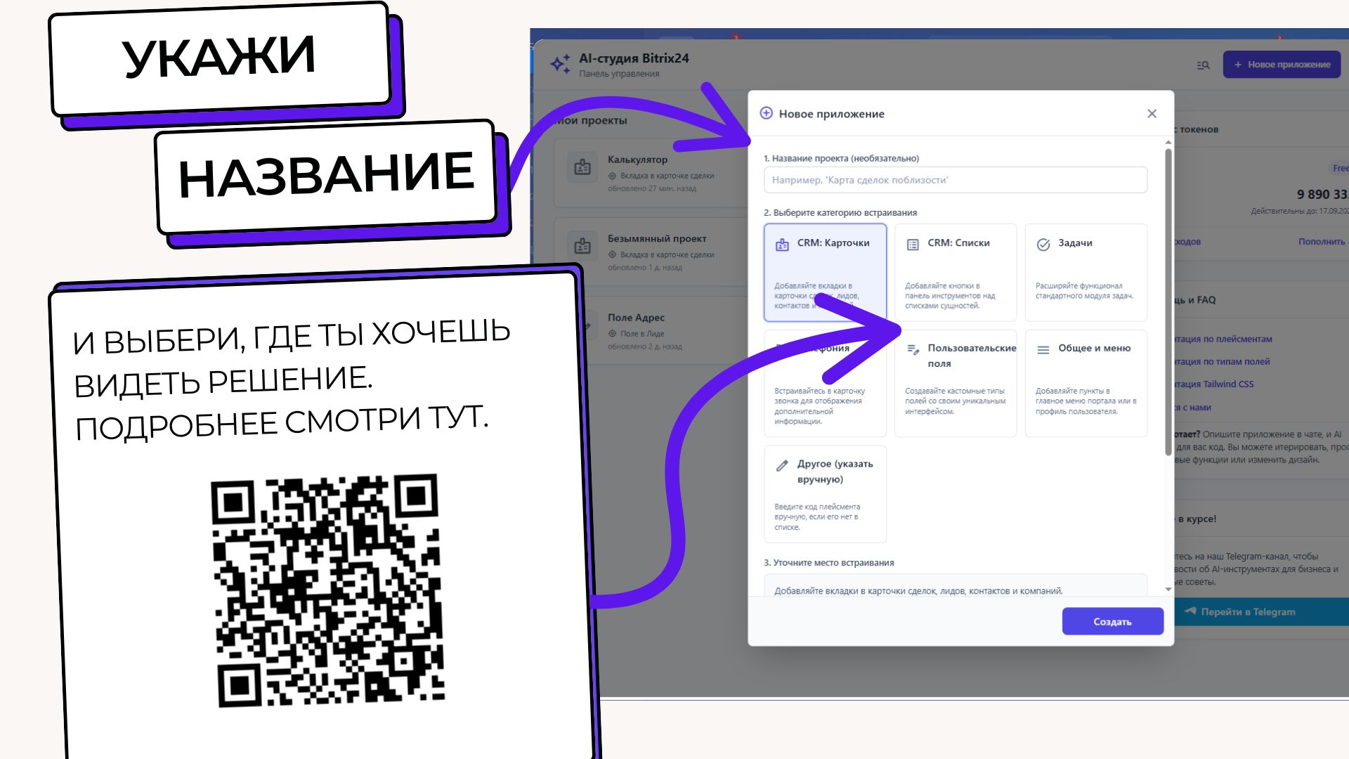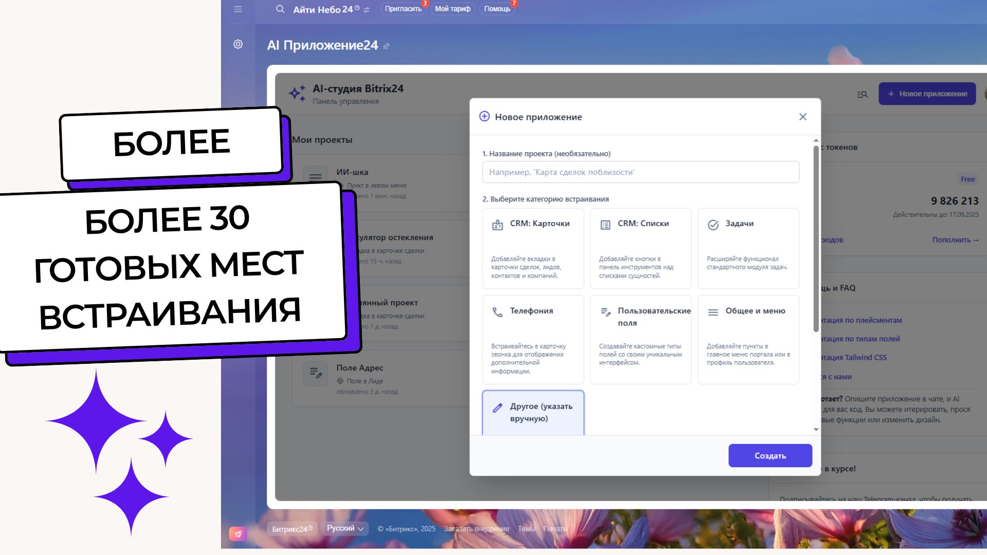 Приложения, созданные в AI Студии, легко интегрируются в любую часть Битрикс24: в карточки CRM, списки, задачи, меню и даже телефонию.