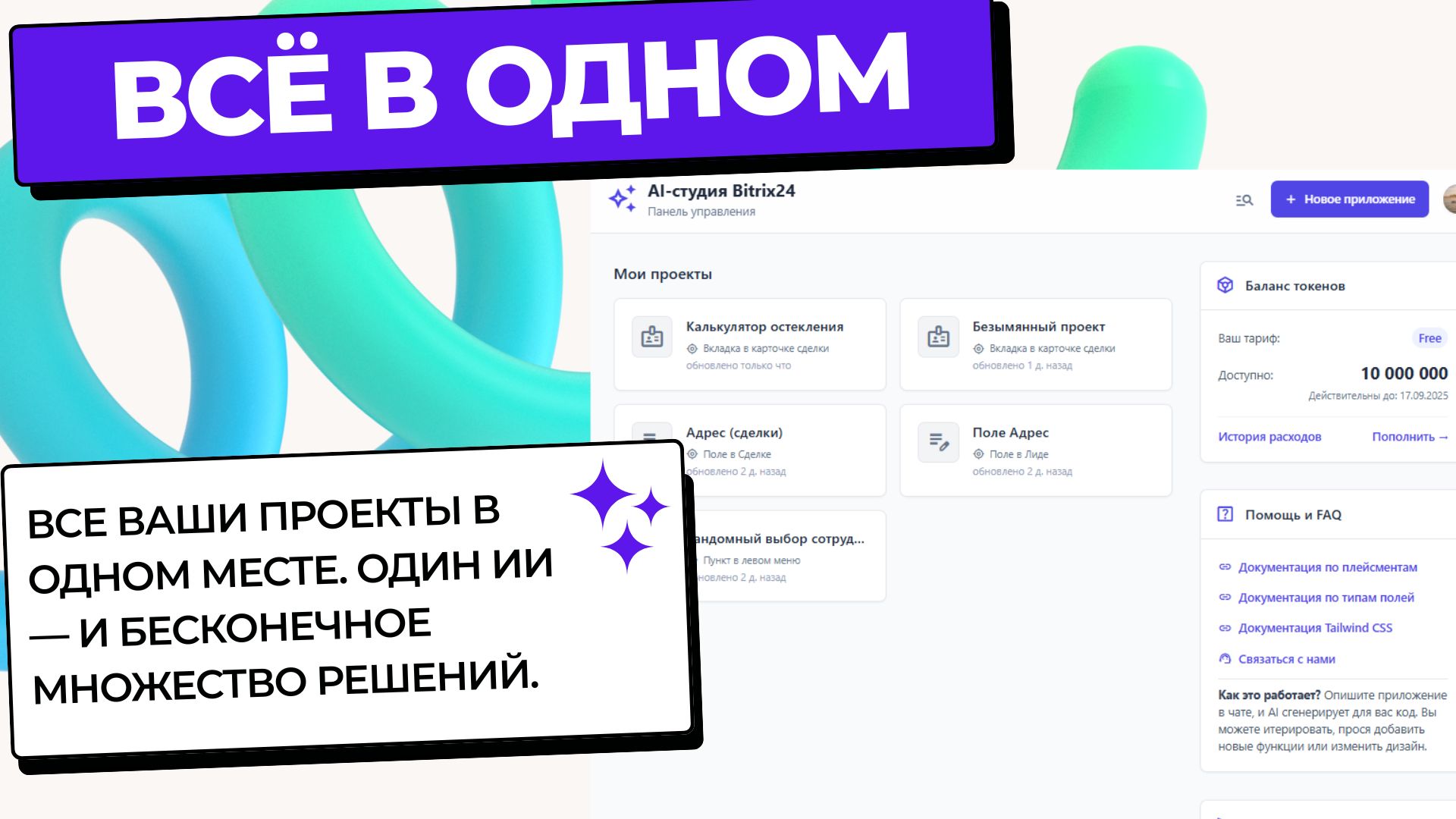 AI Студия — это революционный инструмент, который позволяет любому сотруднику вашей компании создавать полноценные приложения для Битрикс24 без навыков программирования. Просто опишите вашу задачу в чате с AI, и он сгенерирует готовый к использованию код.