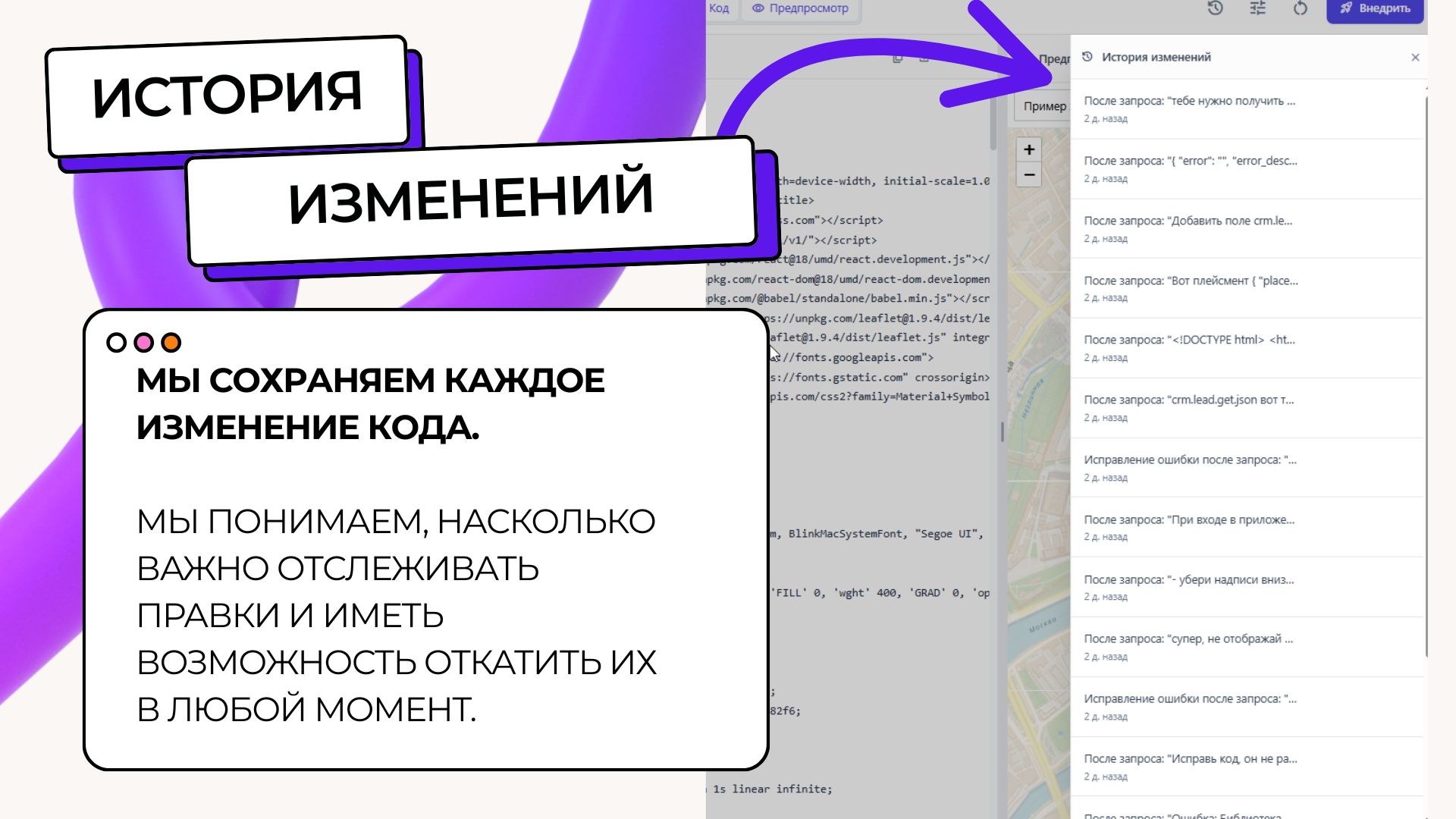 Мы сохраняем каждую версию кода, позволяя вам в любой момент отследить правки или откатить изменения.