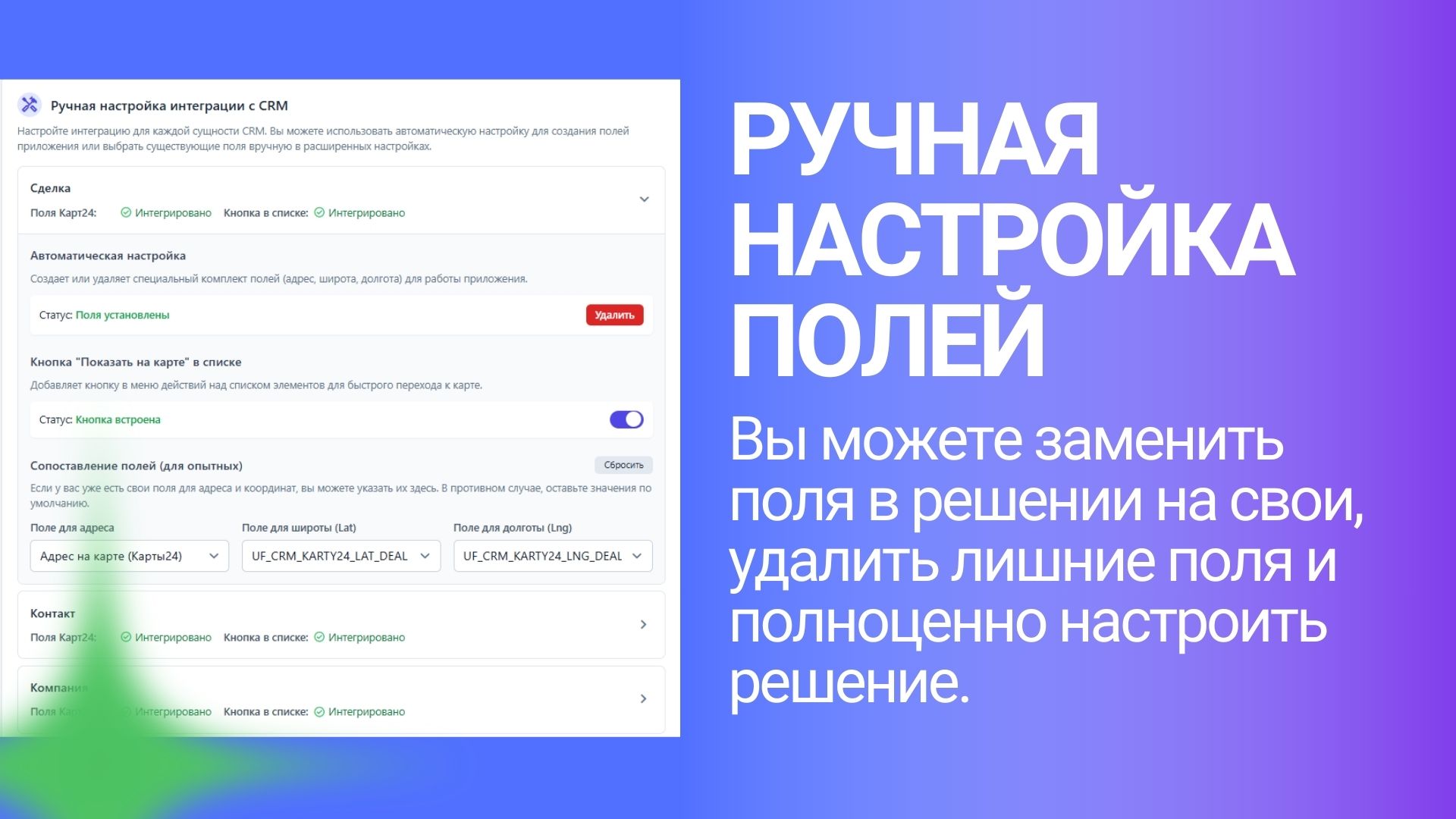 Ручная настройка полей. Вы можете заменить поля в решении на свои, удалить лишние и полноценно настроить приложение.