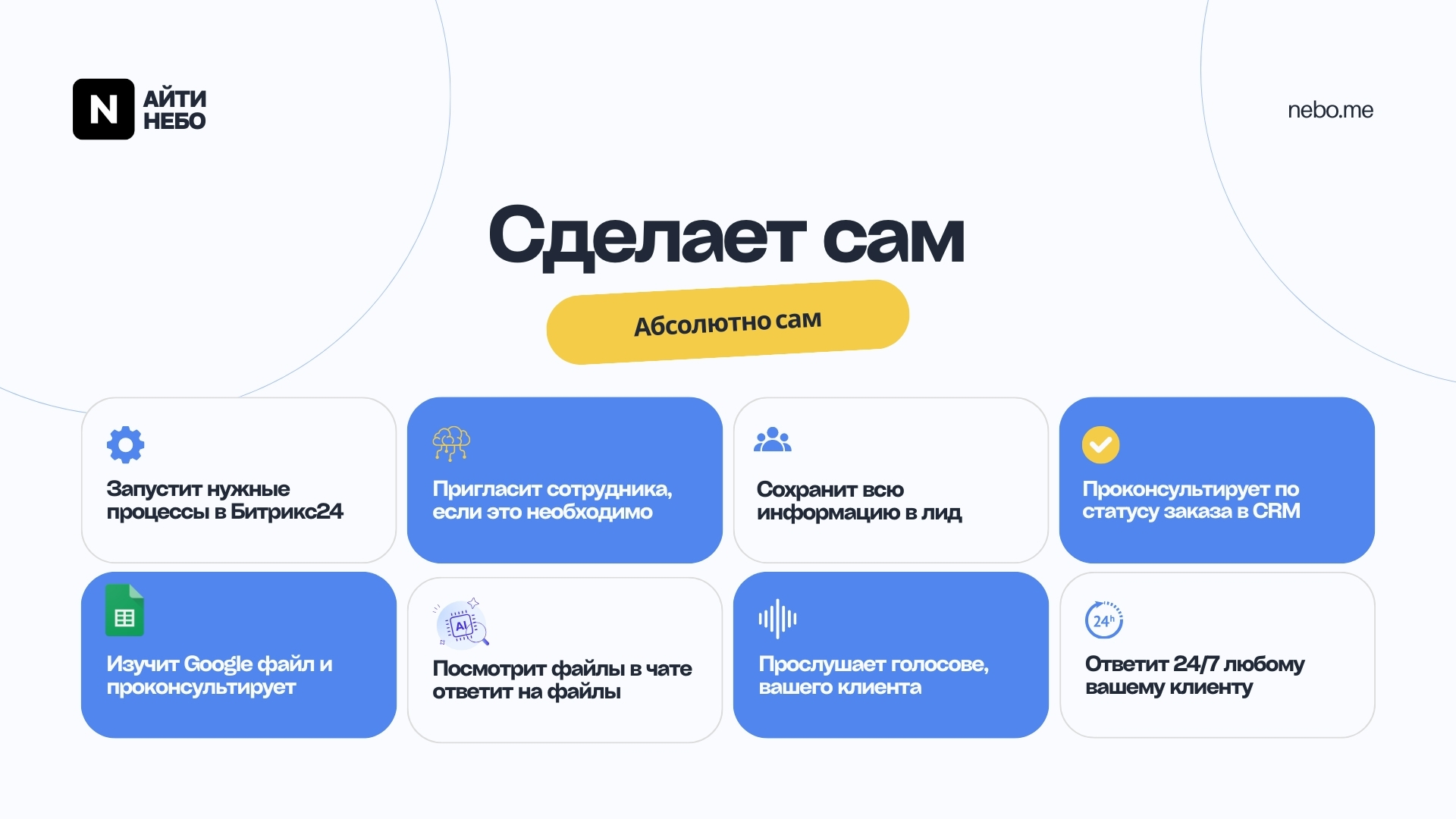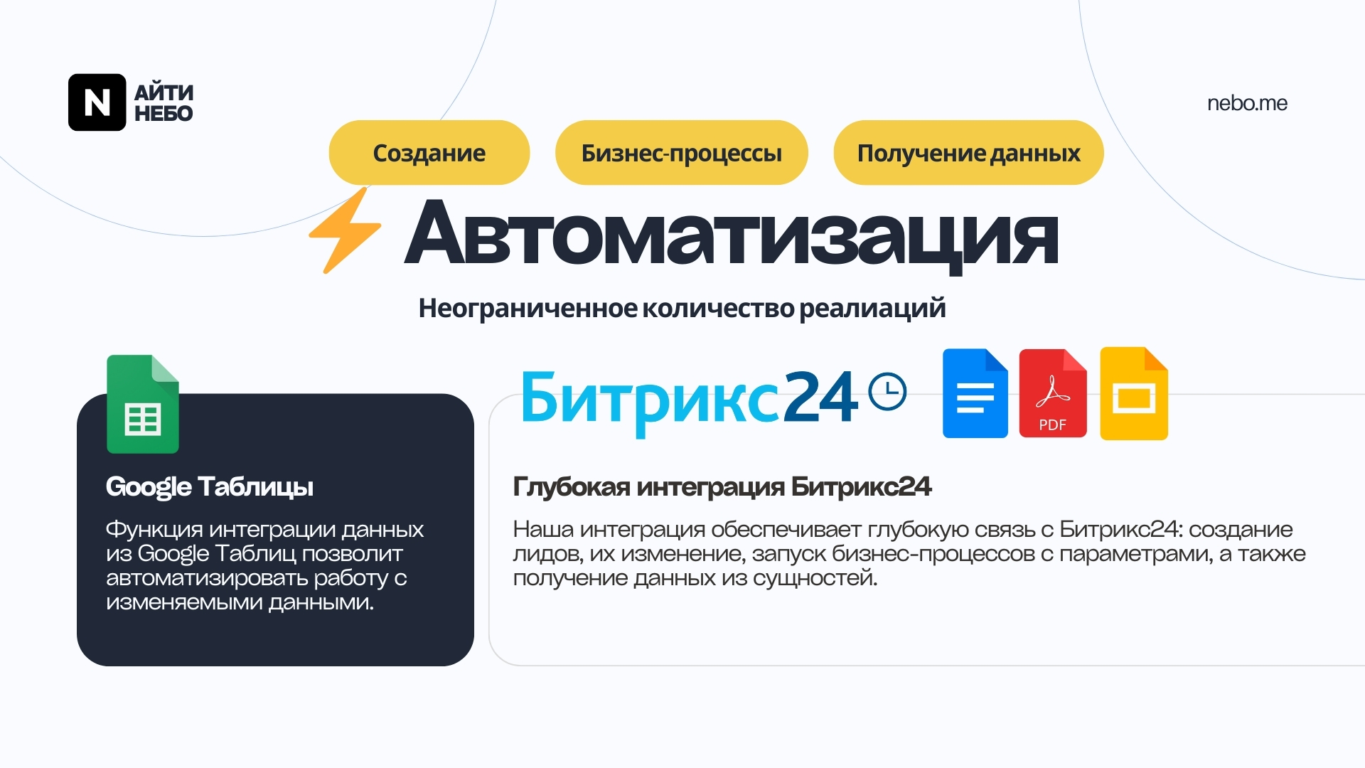 Настройте бота так, чтобы он автоматически запускал нужные бизнес-процессы (БП) в Битрикс24 на основе запросов клиентов.Интеграция с Google Таблицами