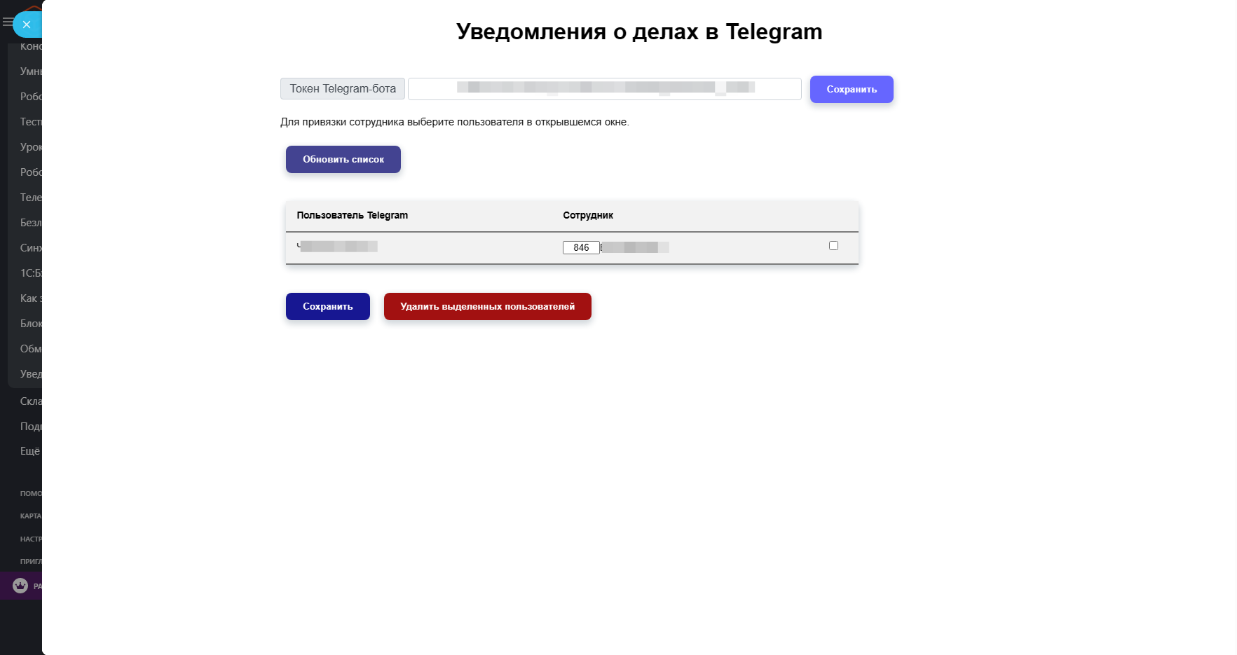 Всё что необходимо, это подключить своего бота созданного в Telegram и связать сотрудников вашего Битрикс24 с пользователями в Telegram.