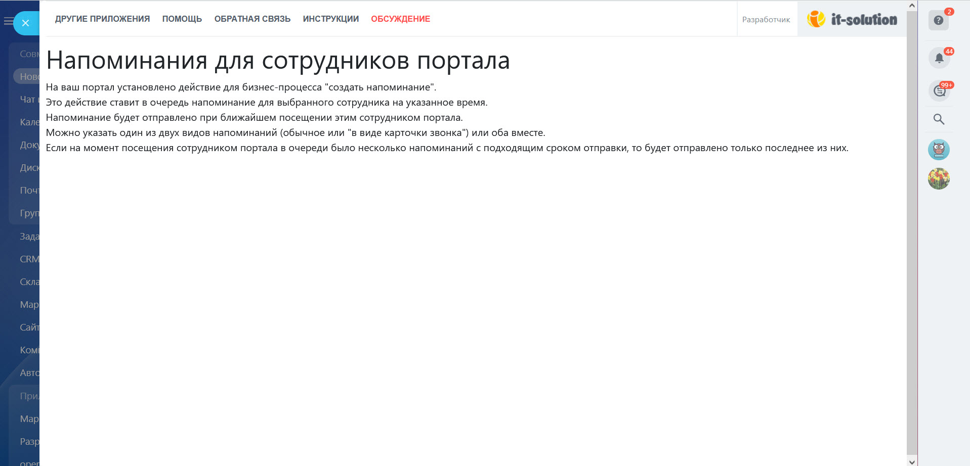 Настройте напоминания для сотрудников на своем портале