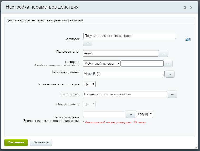 Подробная инструкция по приложению «БП: Получить телефон сотрудника»