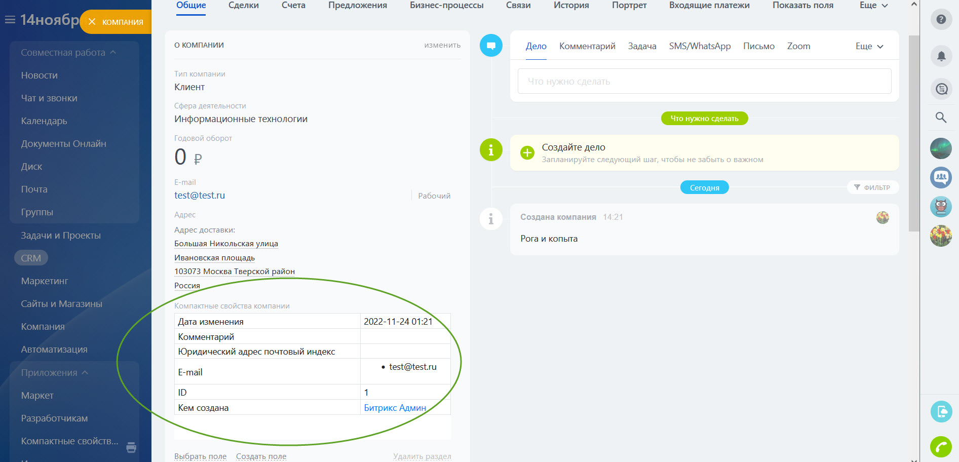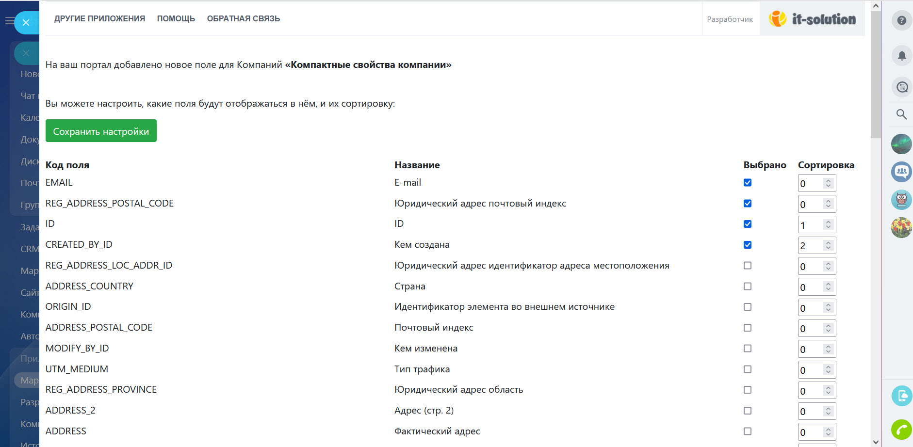 Новое приложение Компактные свойства компании от IT-Solution позволяет вывести в удобном виде необходимую вам информацию внутри карточки компании в CRM Битрикс24.
