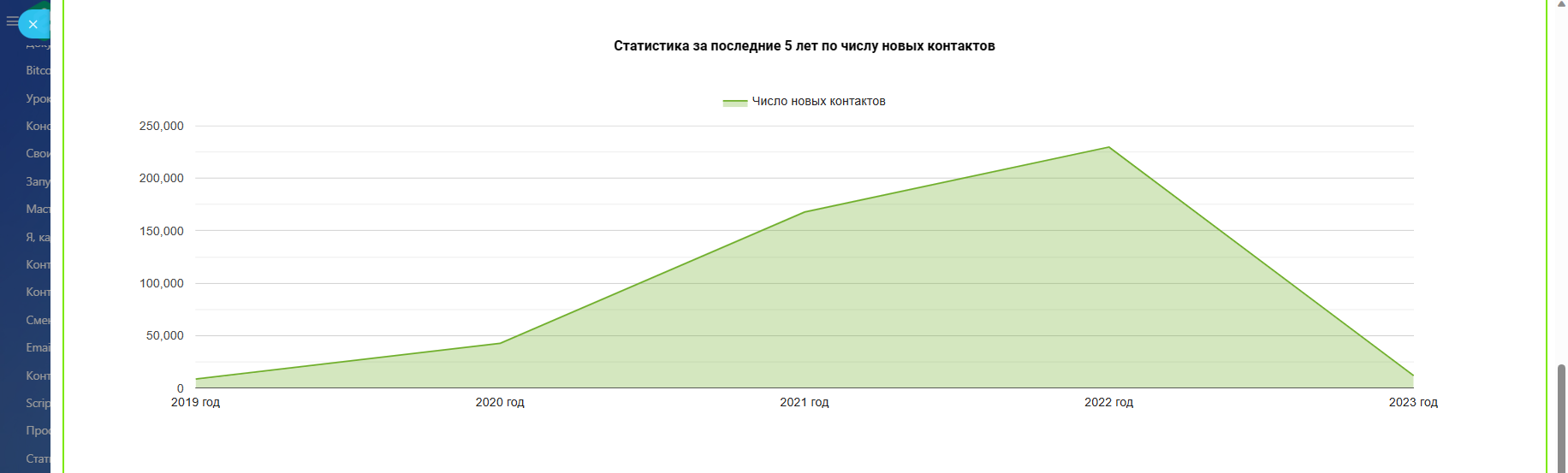 - Динамику роста общего числа Контактов и числа только новых Контактов;