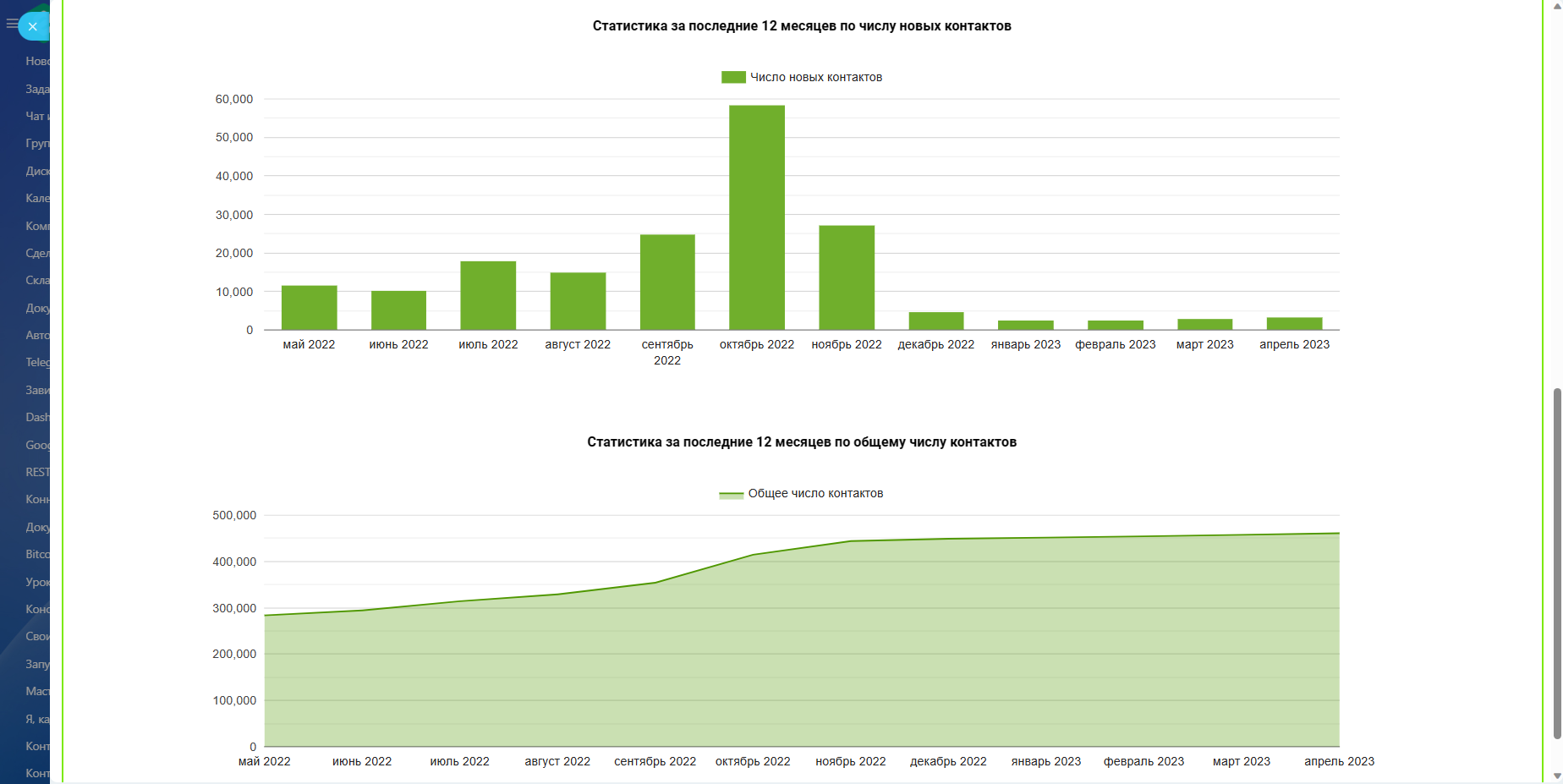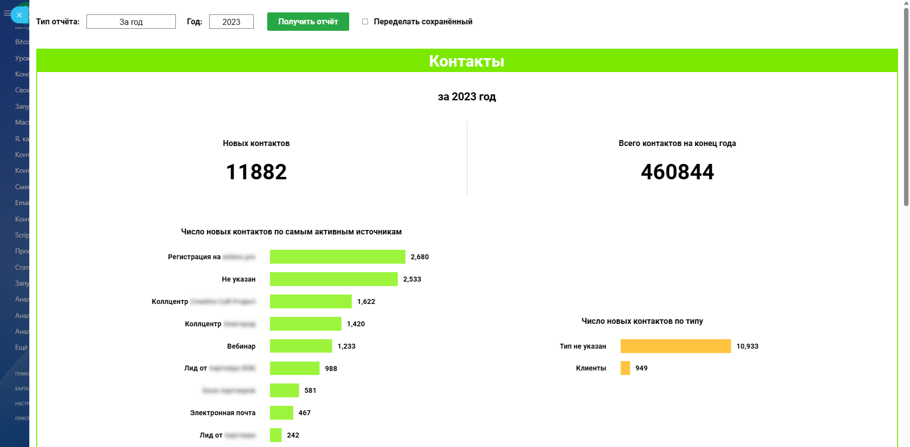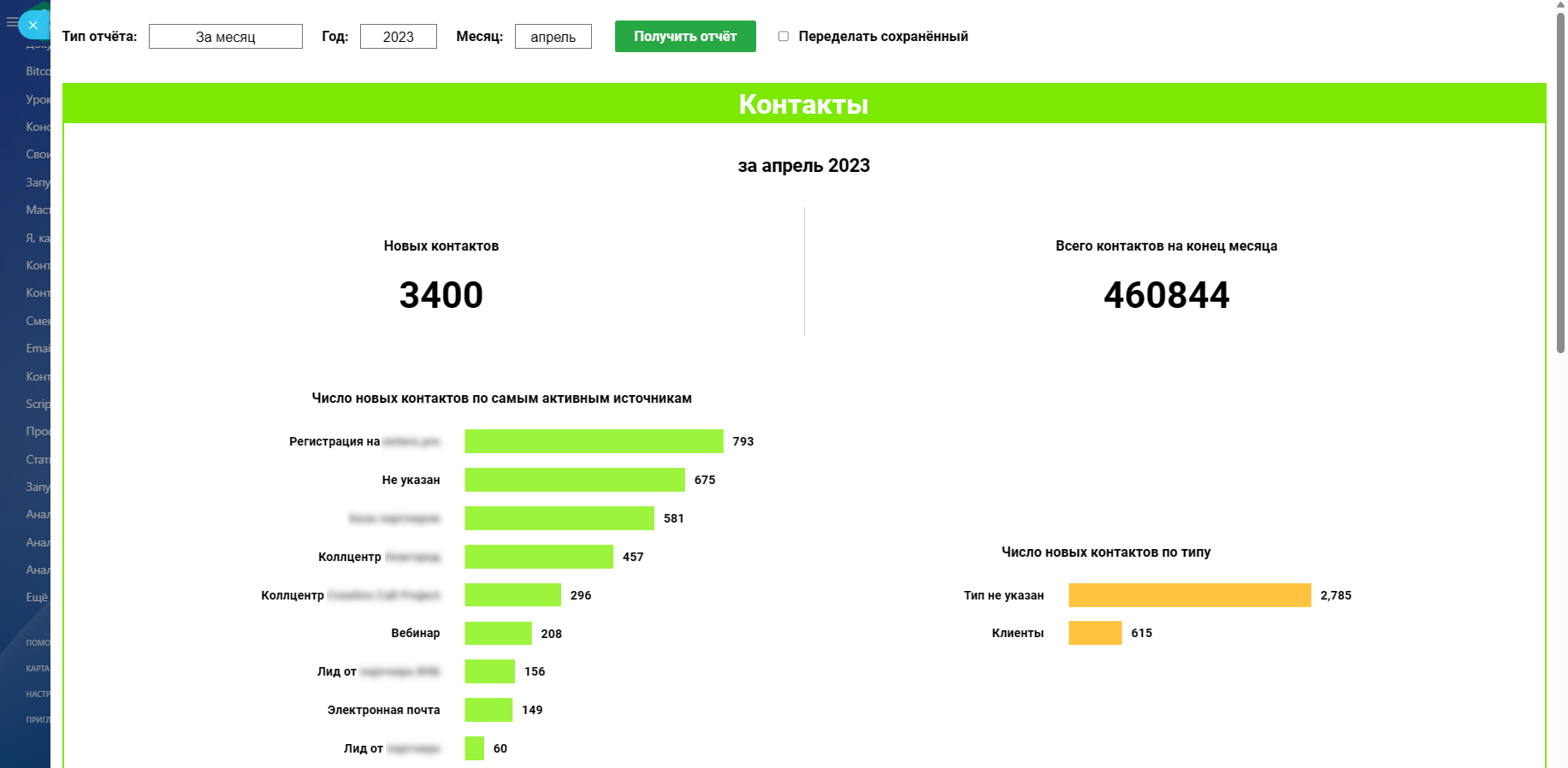 Приложение для получения аналитики по Контактам за нужный отчётный период.