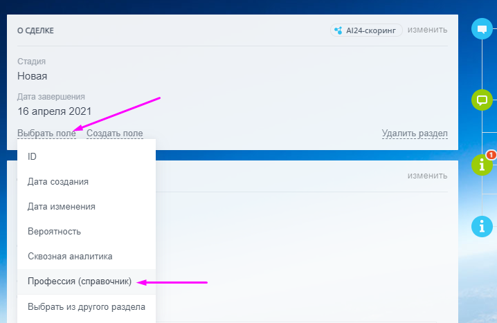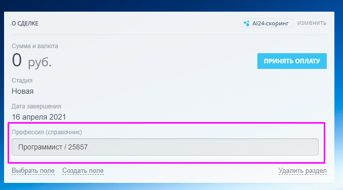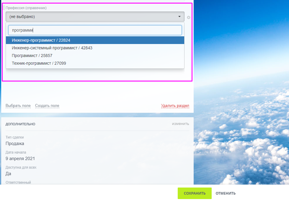 - Создавайте несколько пользовательских полей с новым типом "Профессии (справочник)"
