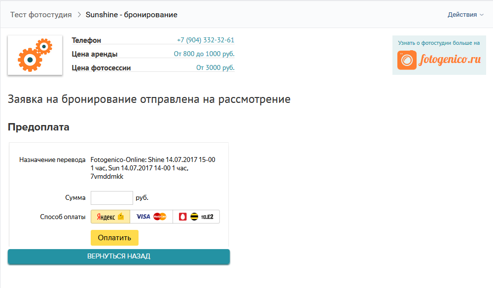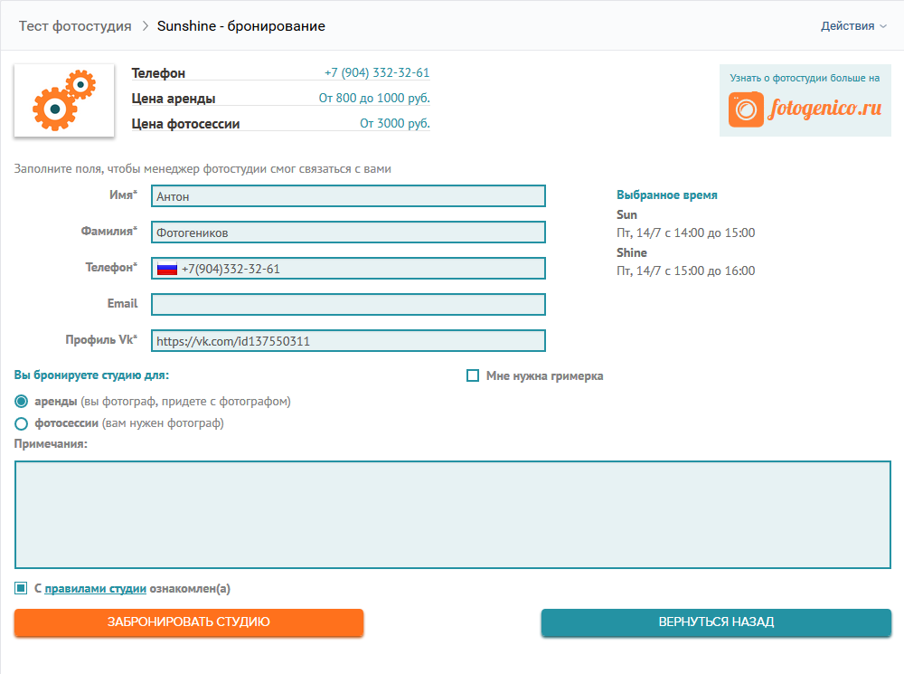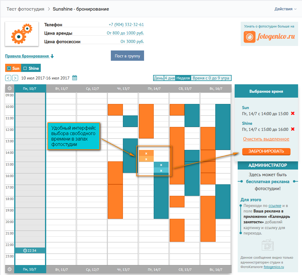 Приложение создано для фотостудий, зарегистрированных в, пожалуй, самом крупном ФотоКаталоге России fotogenico.ru, однако есть возможность масштабирования данного решения для других направлений бизнеса.