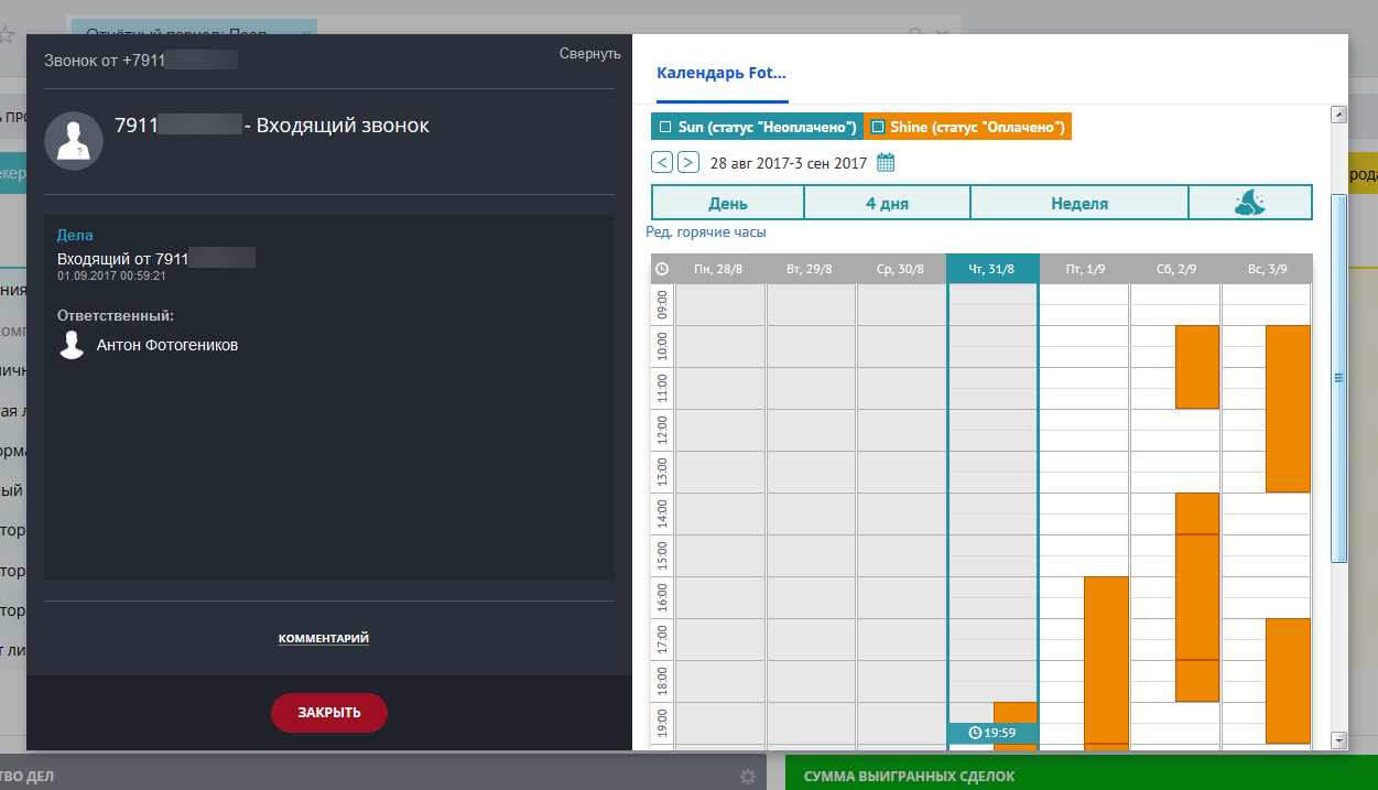 - виджет с календарями в карточке звонка при входящем/исходящем звонке;