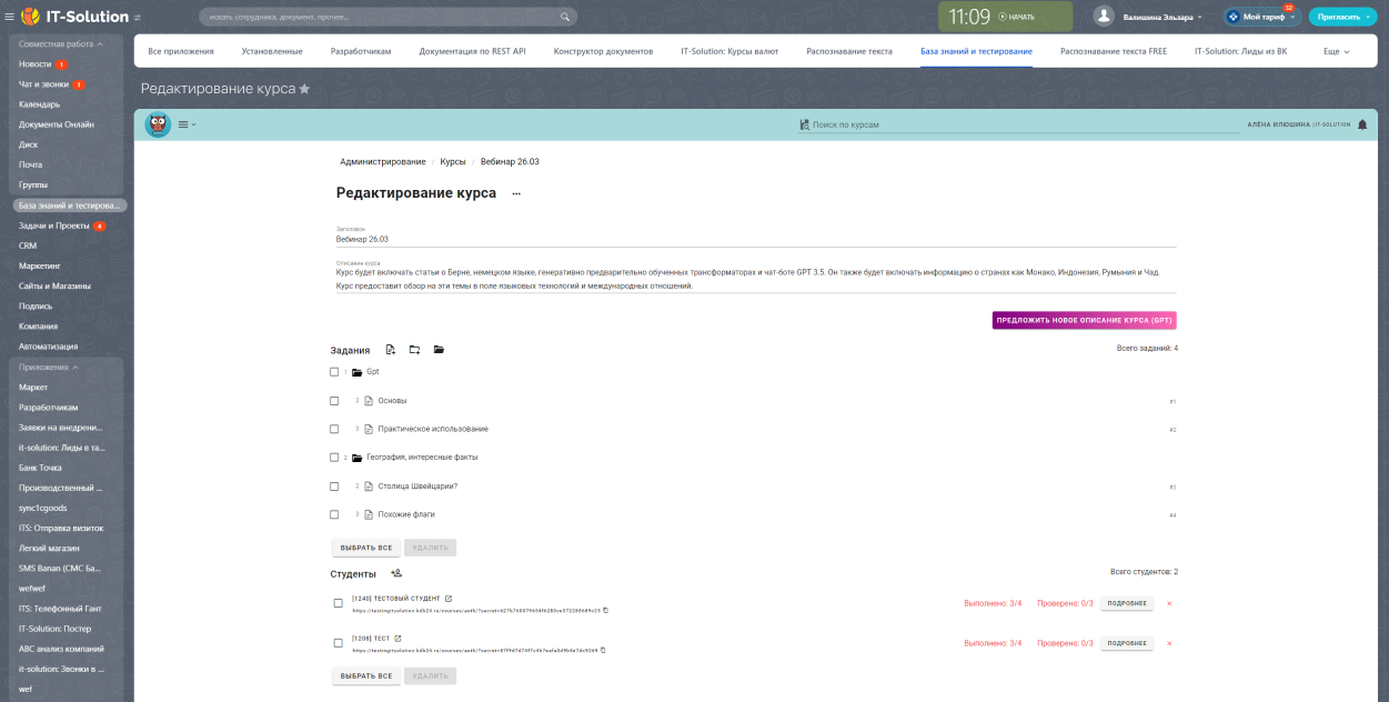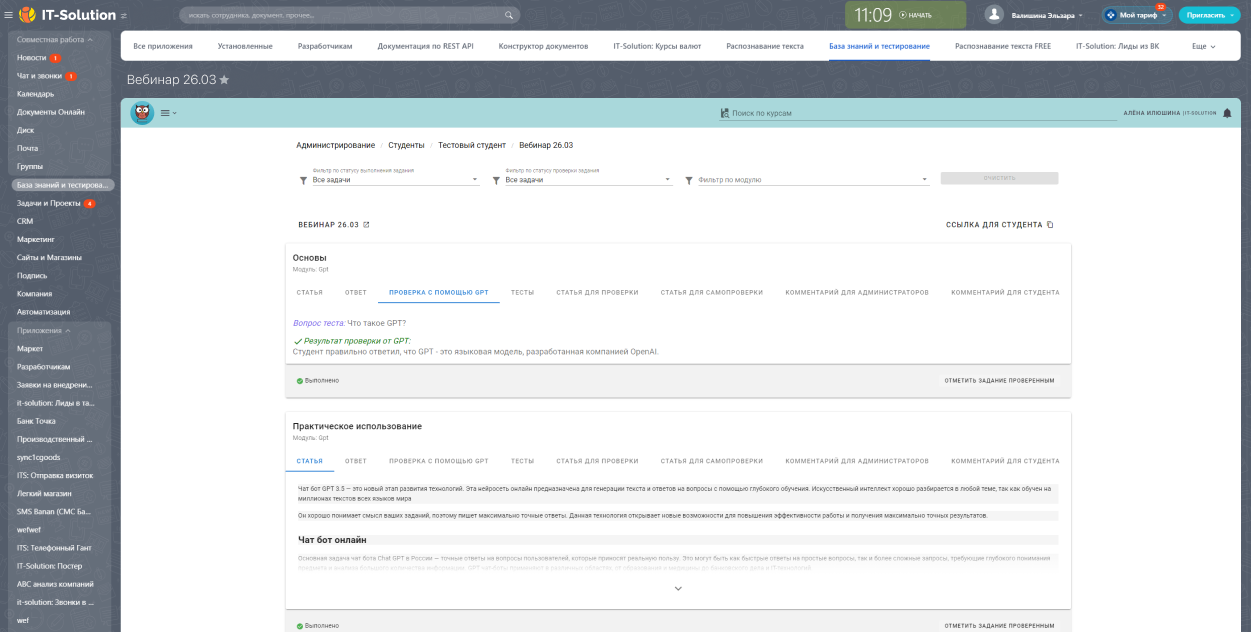 В приложение встроен искусственный интеллект, который значительно ускоряет процессы формирования курсов и проверки тестов: