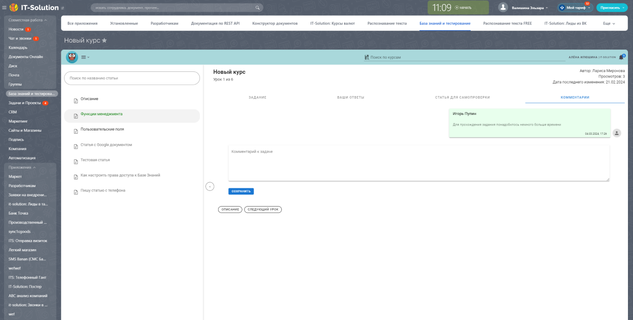 Каждый сотрудник, проходящий курс обучения или тестирование, может в любой момент написать куратору в комментариях для уточнения информации. Благодаря этому пользователи и создатели курсов могут удобно взаимодействовать друг с другом в рамках единой учебной платформы.