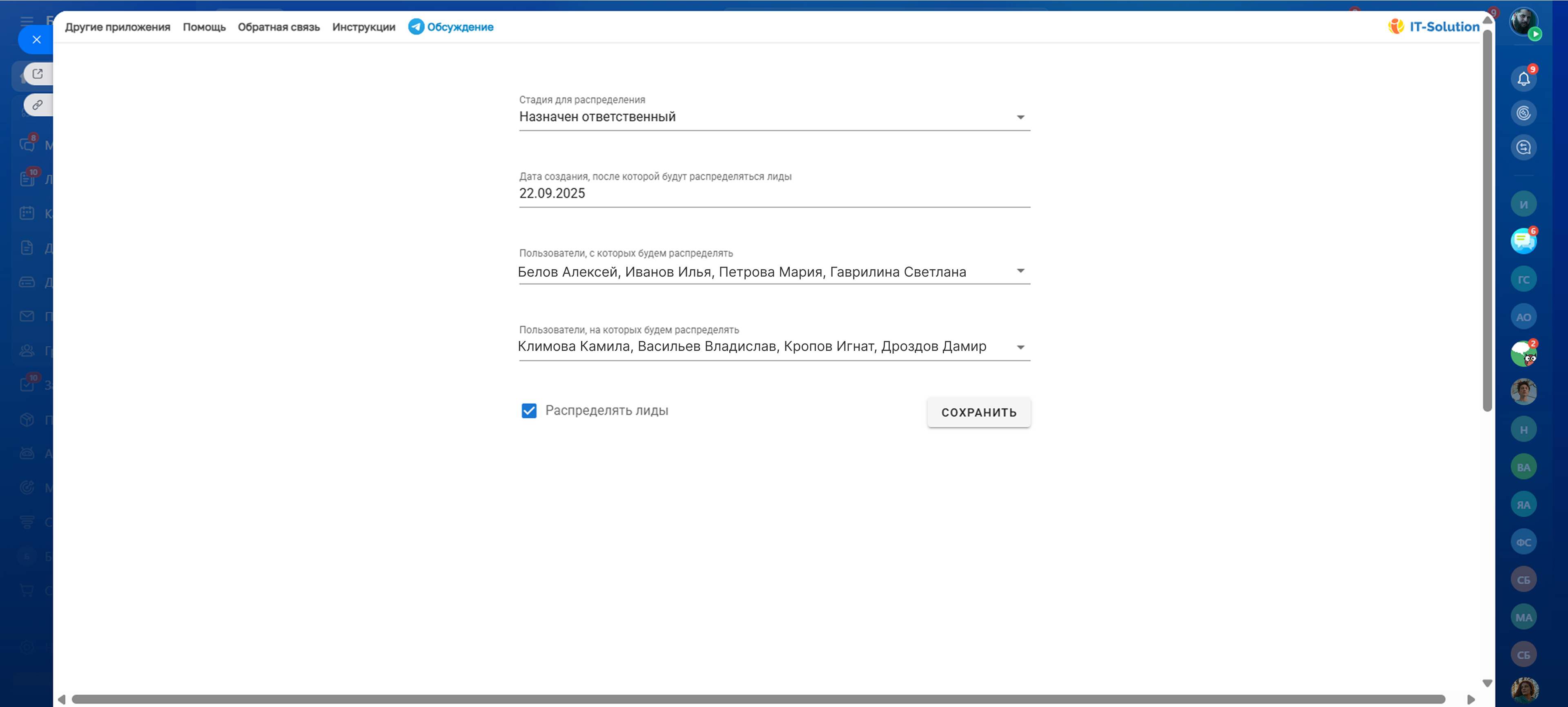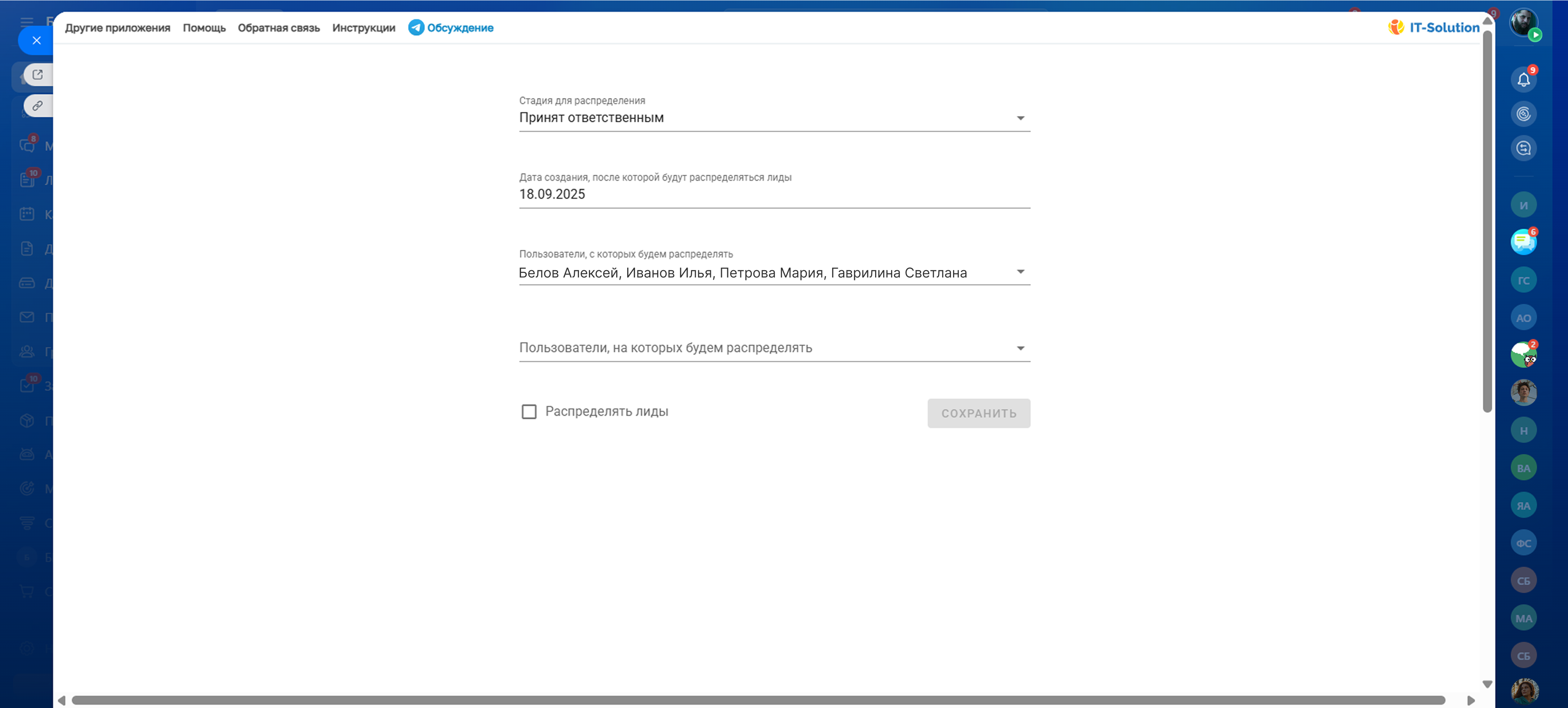 4) Выбираем "пользователей" между которыми будем распределять лиды