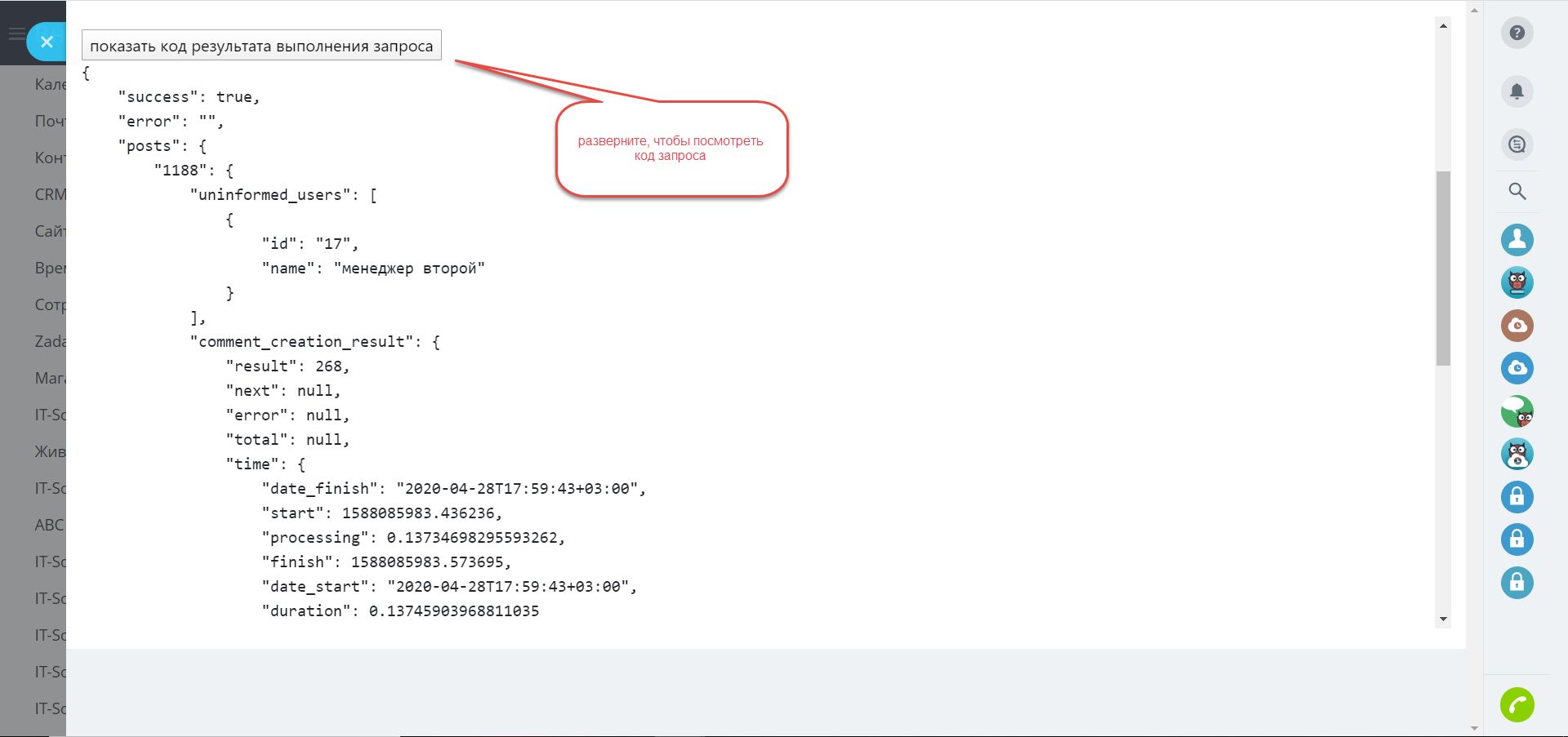 Помимо этого, вы сможете увидеть код выполненного запроса, если нажмете соответсвующую кнопку.