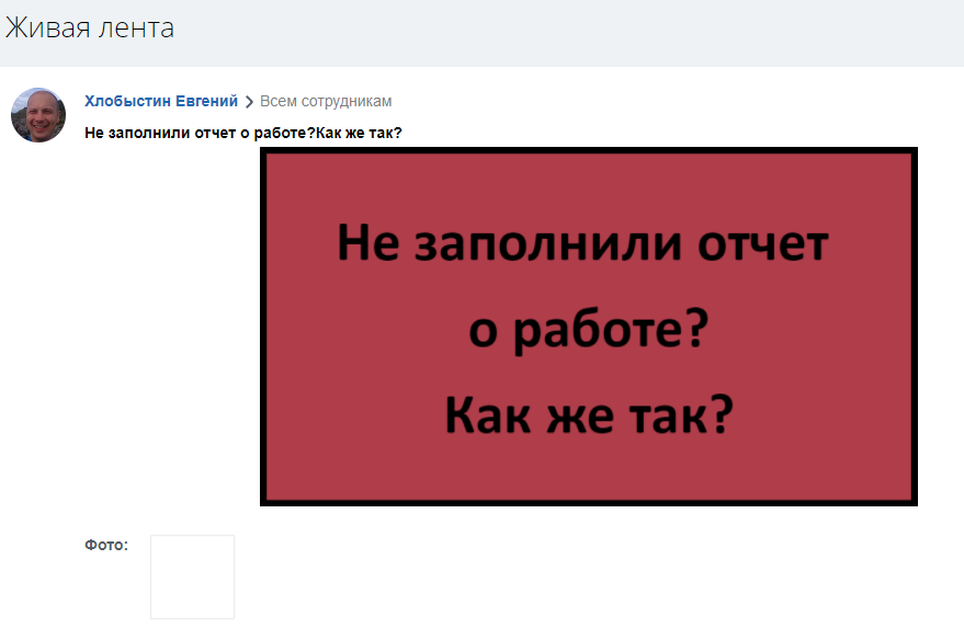сообщение о важных мероприятиях Вашей компании с элементом креатива (например, о ген.уборке офиса)