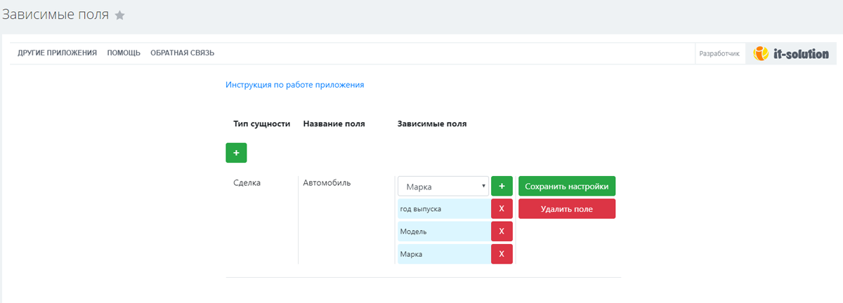 Приложение позволяет в удобной форме заполнять у сущностей CRM поля, которые основаны на зависимых друг от друга Универсальных Списках. Теперь вам не придется листать выпадающий список, в котором слишком много вариантов, и вы не сможете нечаянно создать несуществующую комбинацию параметров!