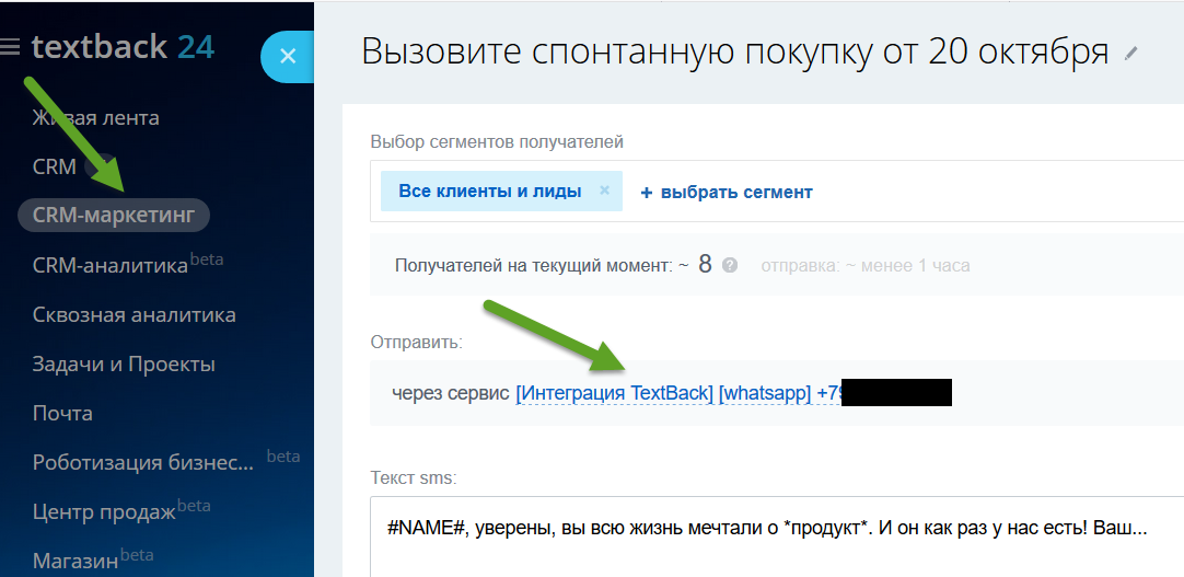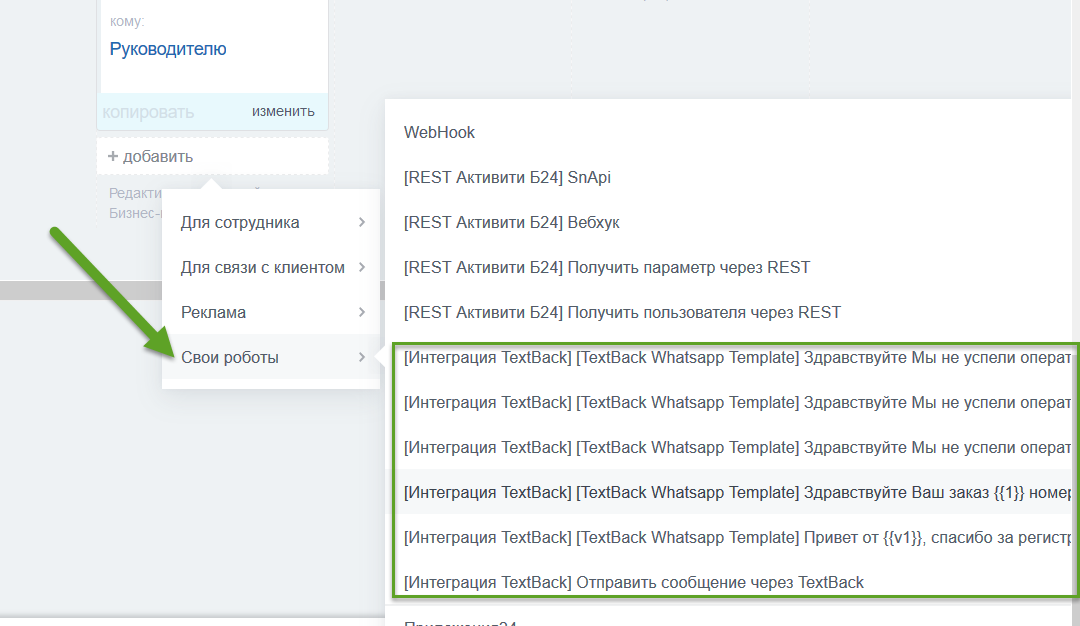 Зарегистрироваться в сервисе TextBack и установить приложение на ваш портал Битрикс24.