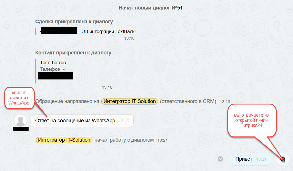 Отвечать на все сообщения из WhatsApp прямо в CRM;