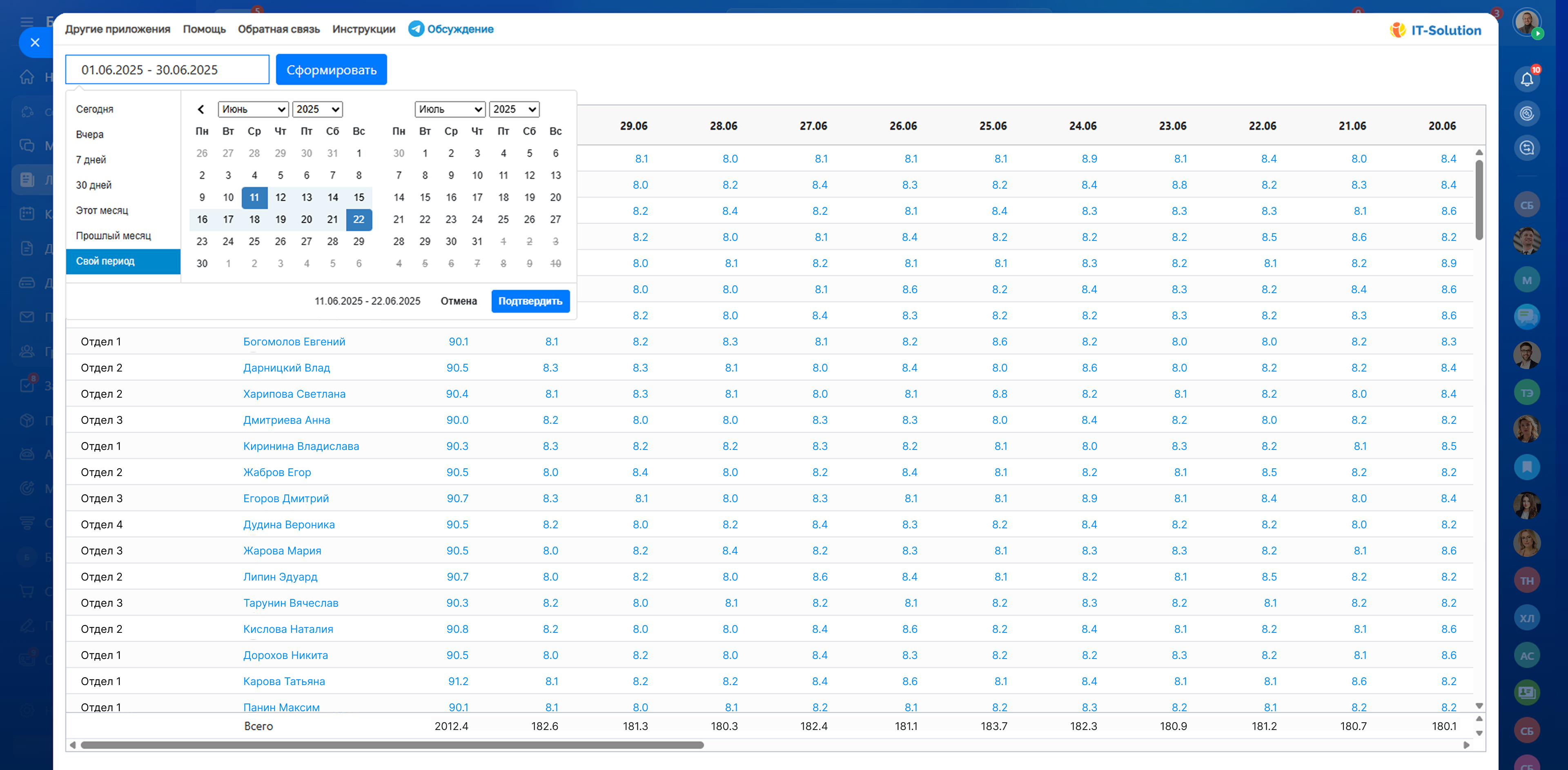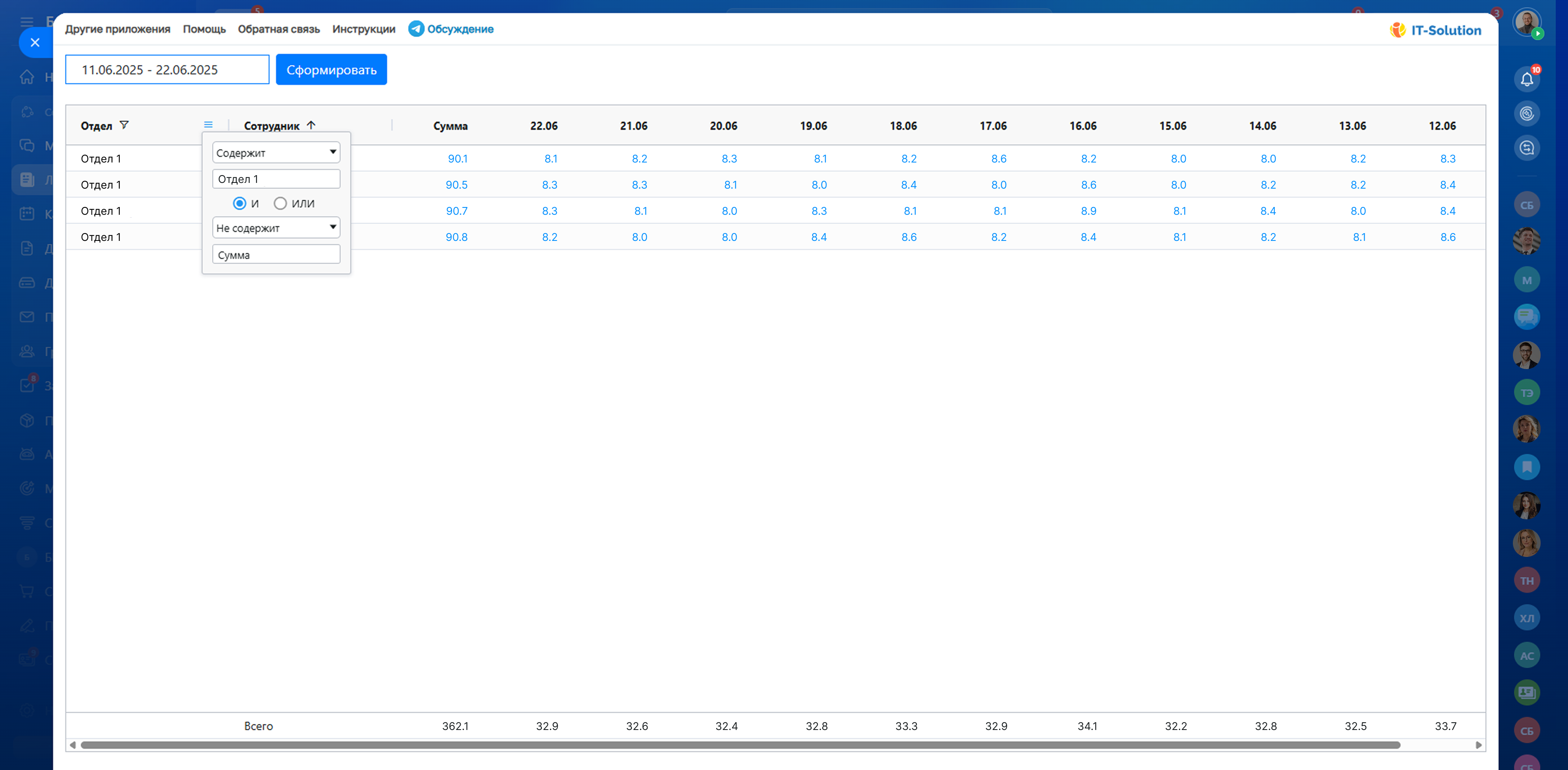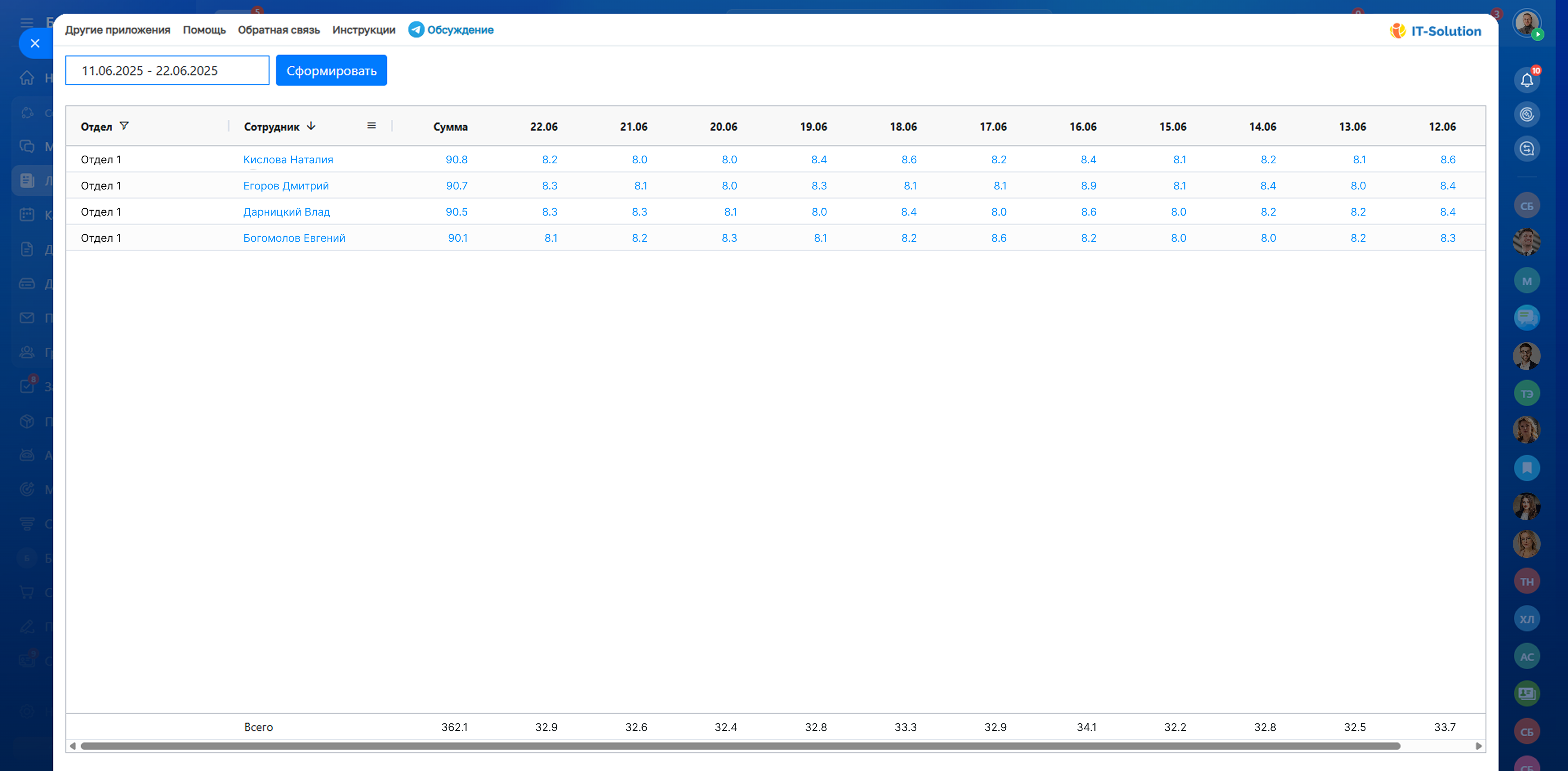 С приложением вы легко сможете увидеть, сколько времени вносит в задачи каждый сотрудник на портале.