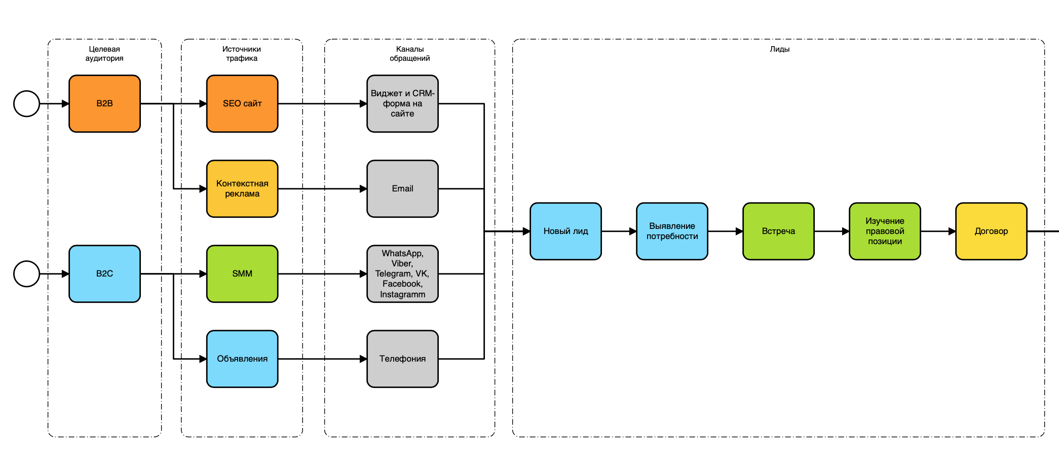 - Настроенная воронка лидов.