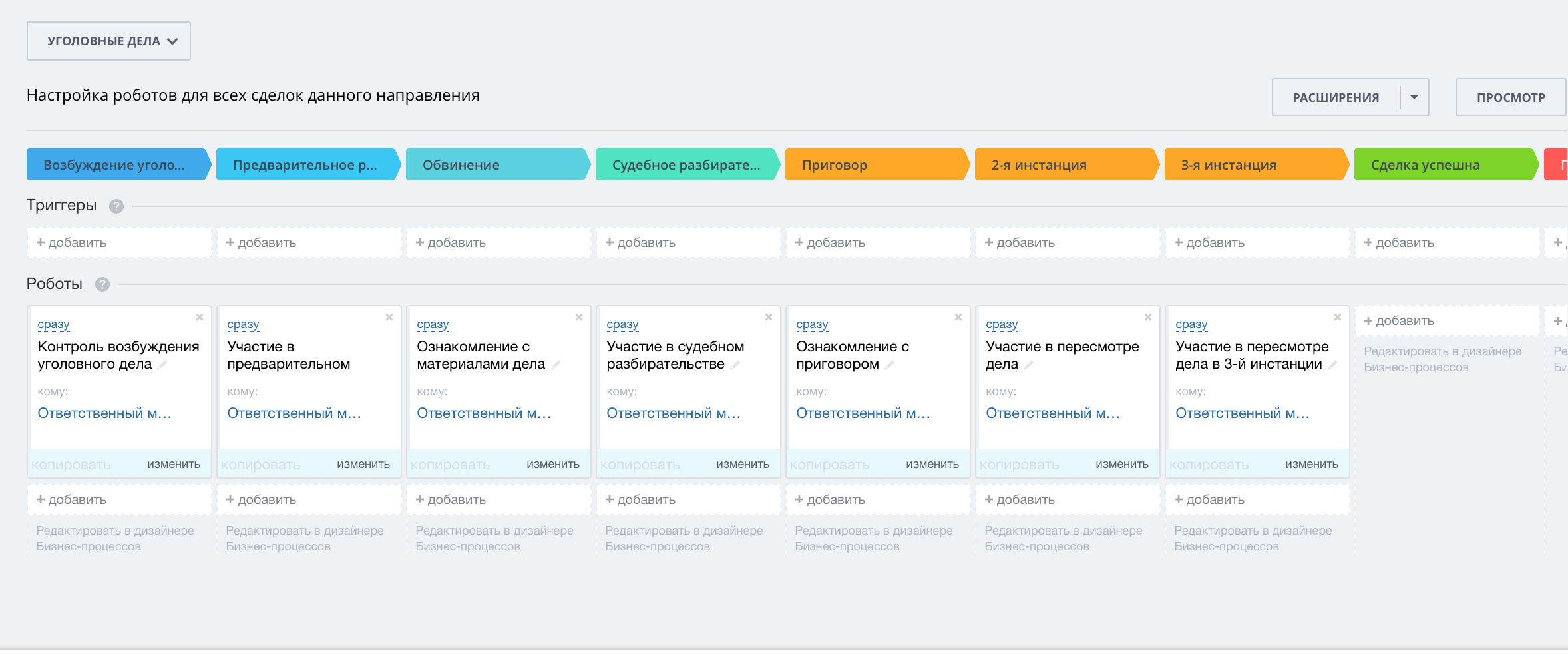 Направление сделки «Уголовные дела» состоит из следующих этапов: