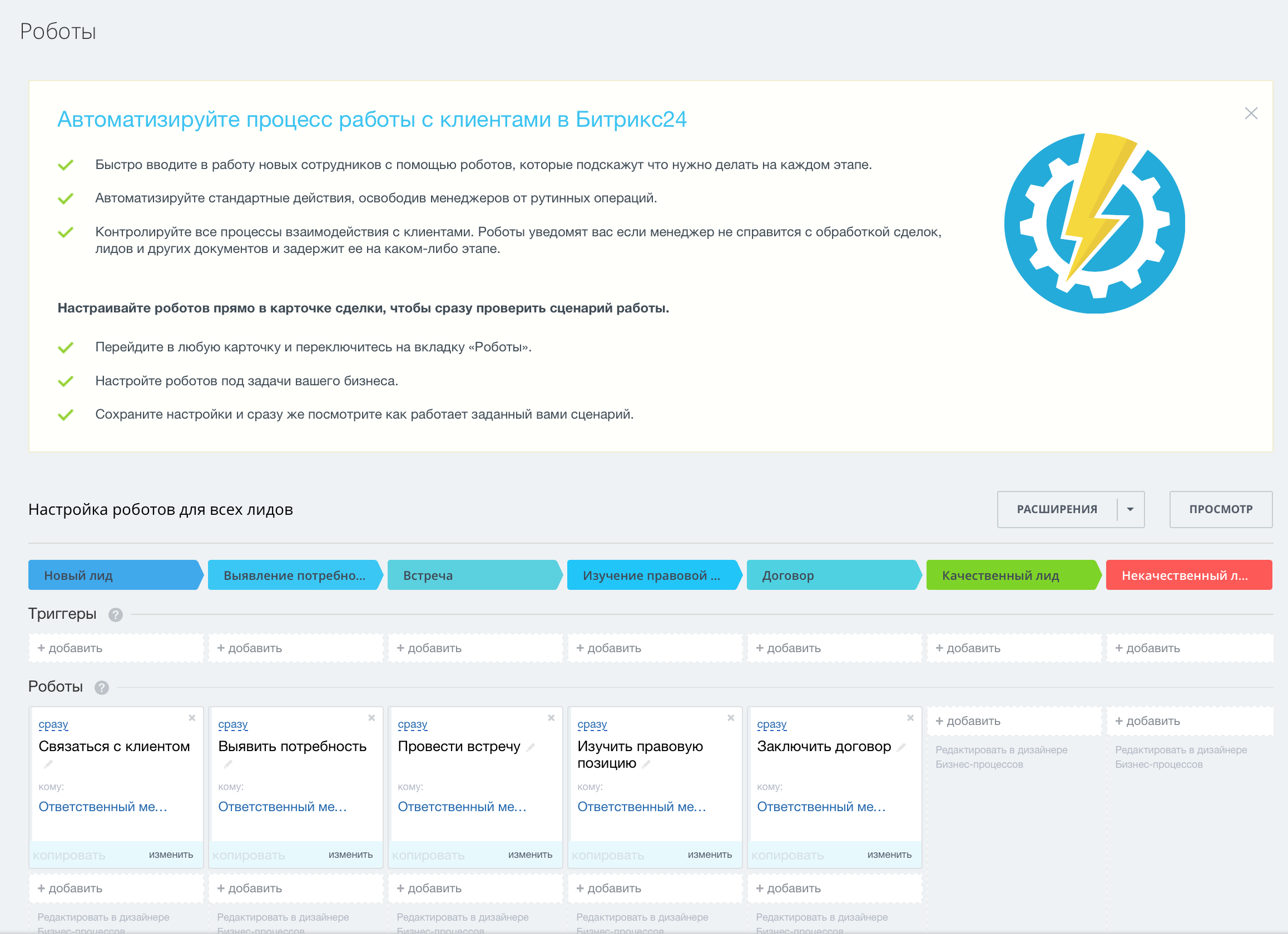 - Роботы в лидах и сделках.