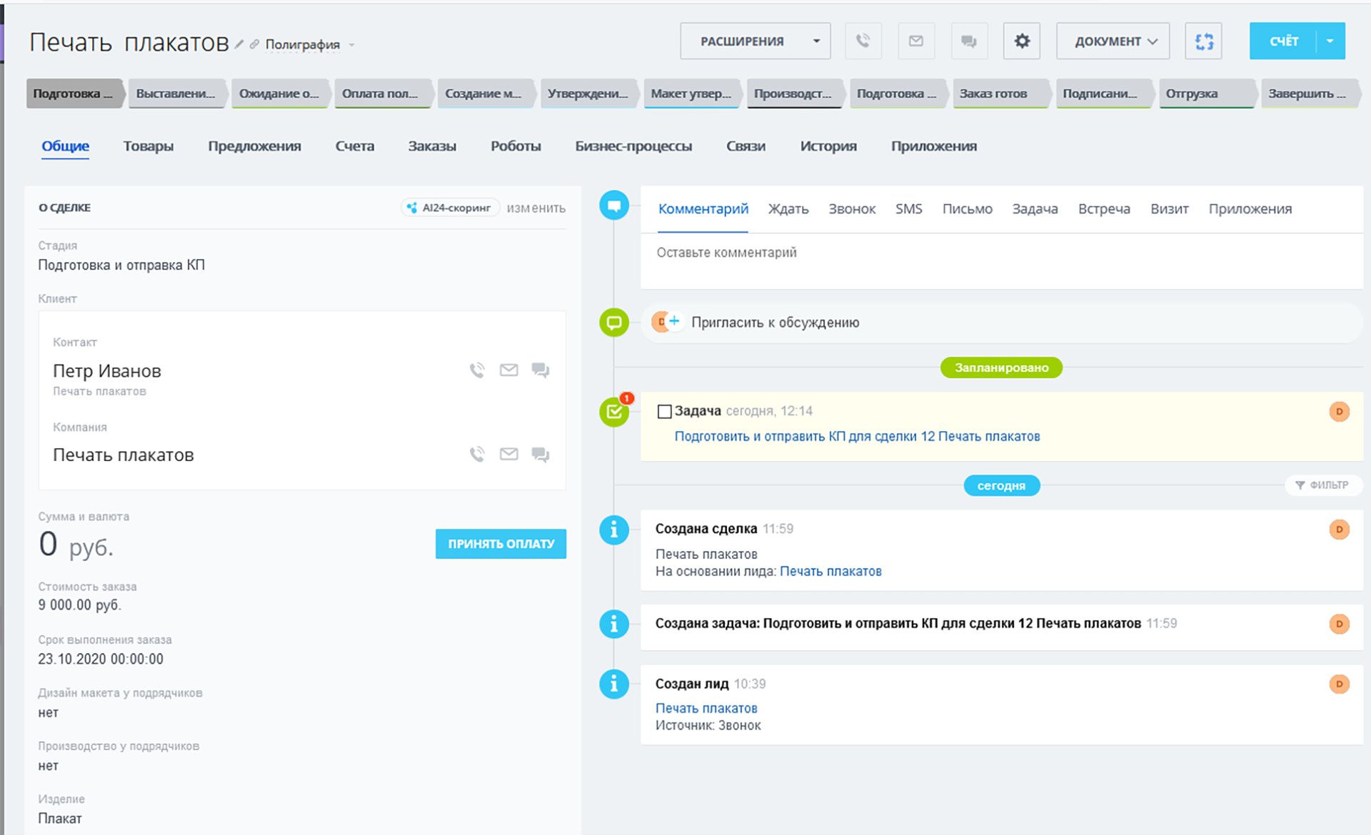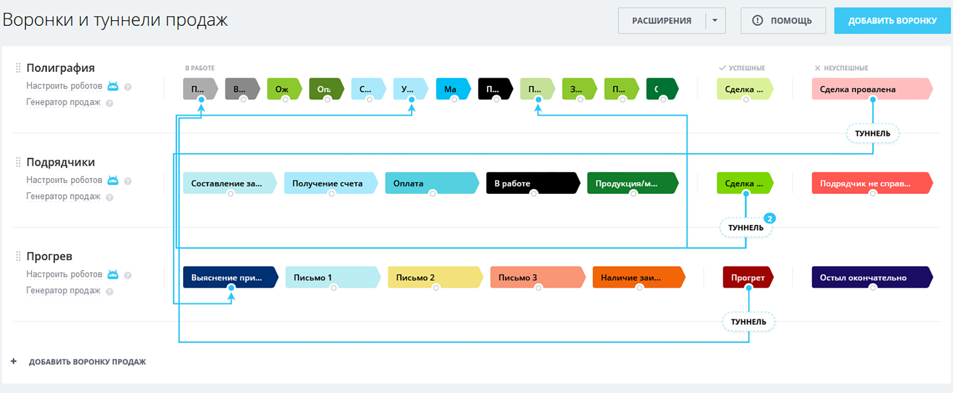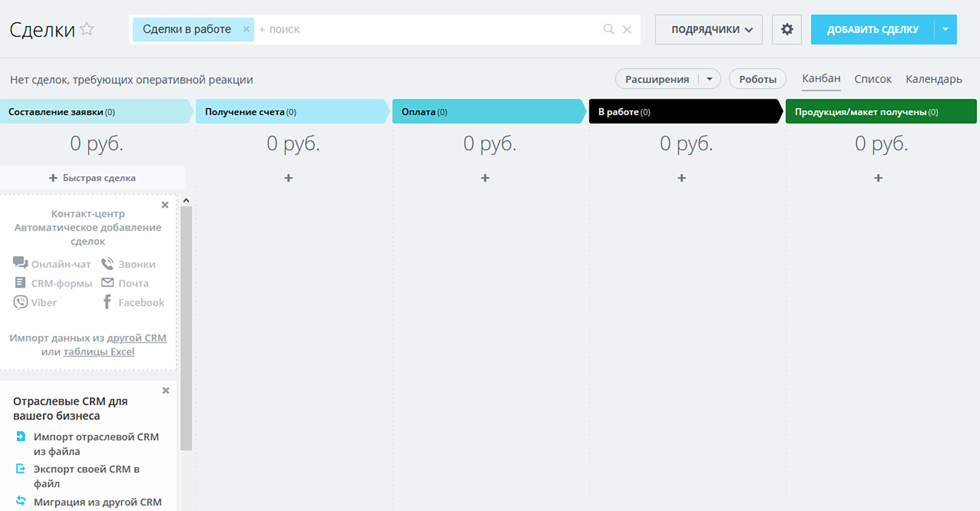 - 2 направления сделок: «Полиграфия» и «Подрядчики».