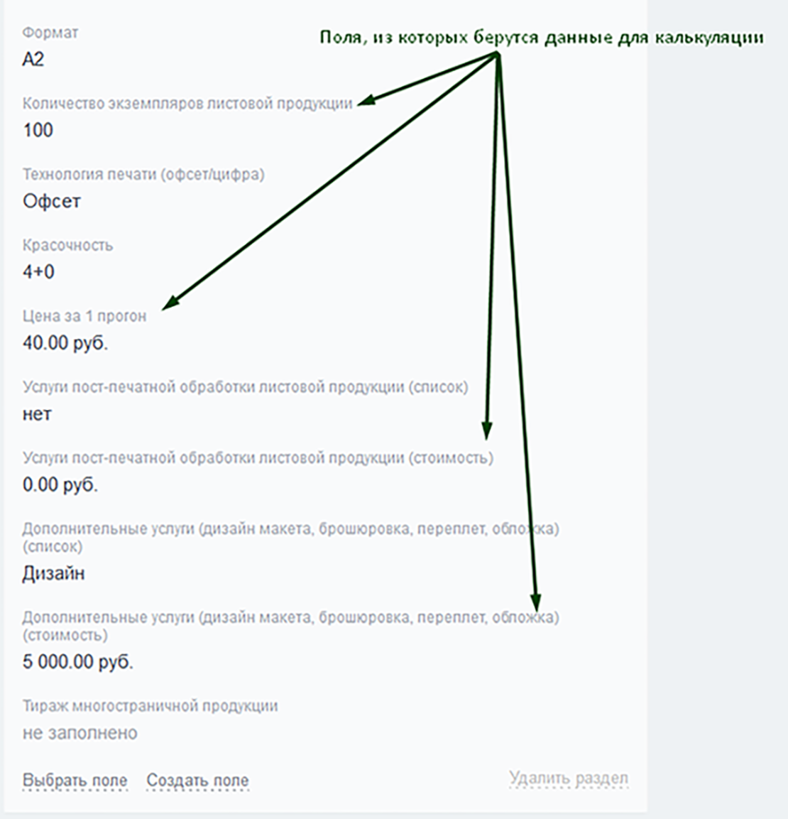 Формула для расчета является обобщенной для большинства услуг производства полиграфической продукции: