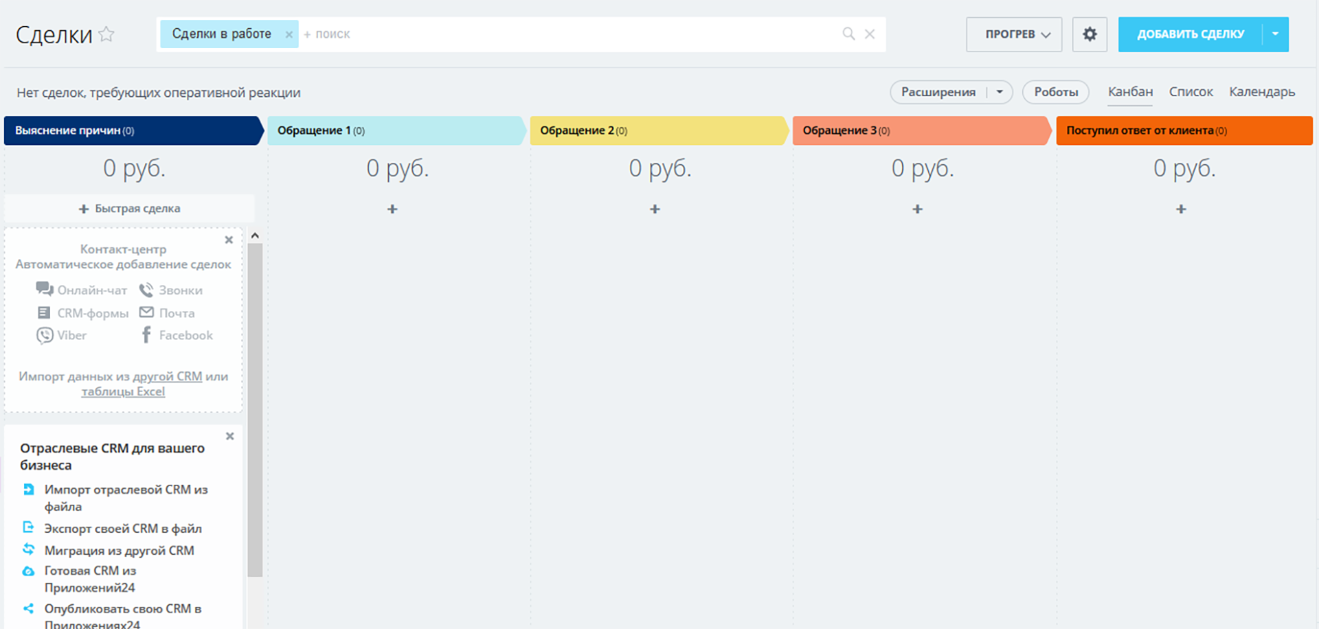 - 3 направления сделок: «Полиграфия», «Подрядчики» и «Прогрев».