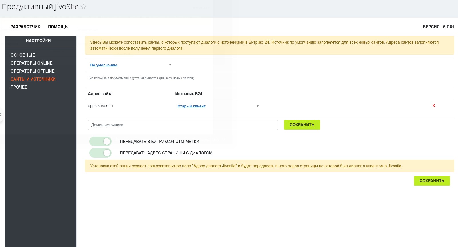 ПРИ ПЕРЕХОДЕ НА НОВУЮ ВЕРСИЮ НЕОБХОДИМО ОБНОВИТЬ ССЫЛКУ В КАБИНЕТЕ JIVOSITE