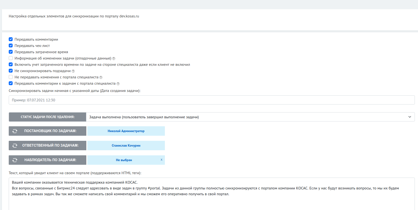 После того, как вы подключили к порталу специалиста портал клиента, вы сможете создавать и менять задачи в обоих порталах. При этом они будут синхронизироваться в обе стороны.