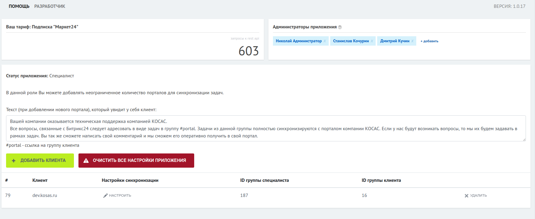 Приложение позволяет синхронизировать задачи на разных порталах делая процесс поддержки клиентов максимально удобным.