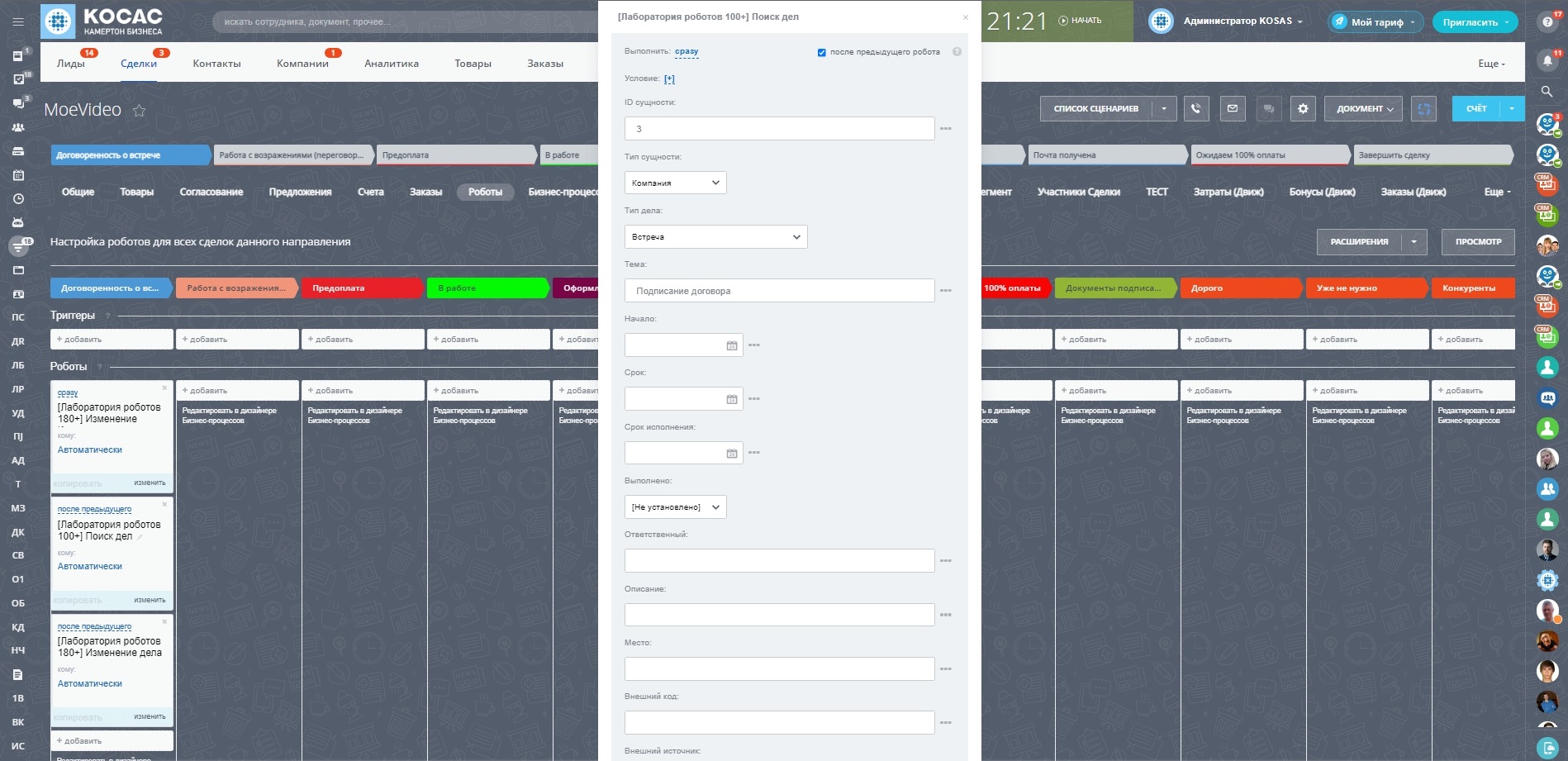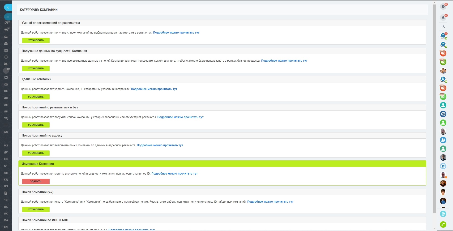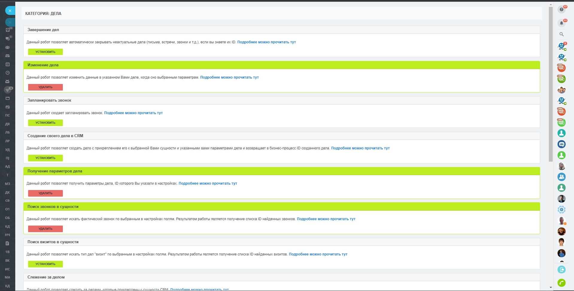 - Роботы в CRM работают на тарифах - CRM+, Команда, Компания, Профессиональный, Стандартный, Коробочных или NFR
