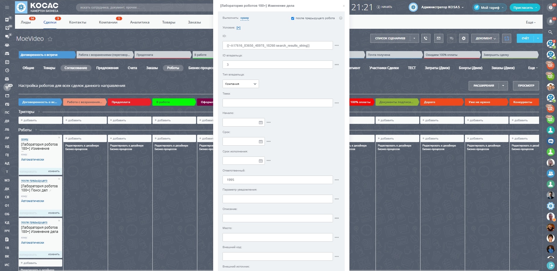 Дальше, срабатывают Роботы, которые переносят все эти дела и меняют ответственного в сущности. Вам для этого понадобится всего 2 клика!