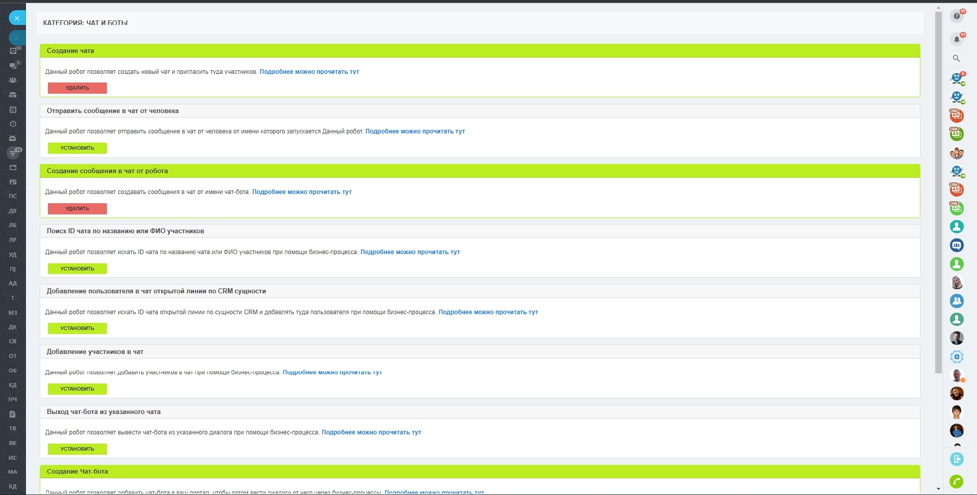 Мы создали целый раздел, в котором добавили роботов, позволяющих создать: чат-бот,