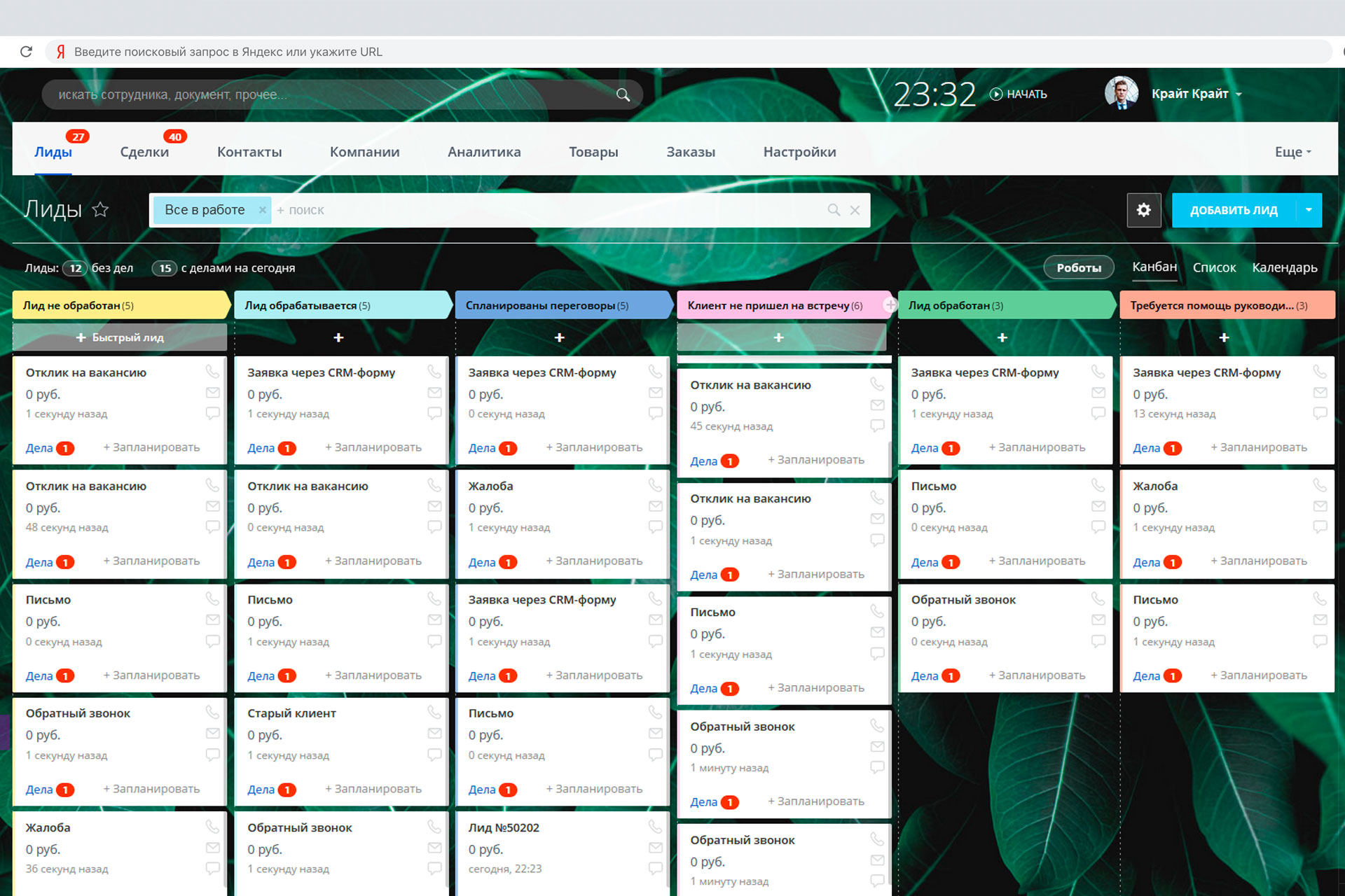 В отраслевой CRM уже созданы стадии воронки лидов для организации работы с потенциальными клиентами. Просто проведите обращение по всем стадиям и сконвертируйте его в клиента компании.